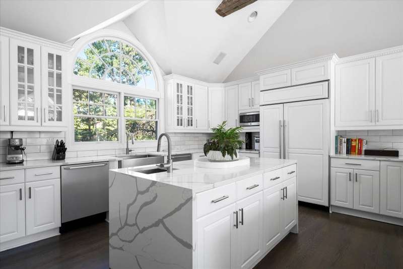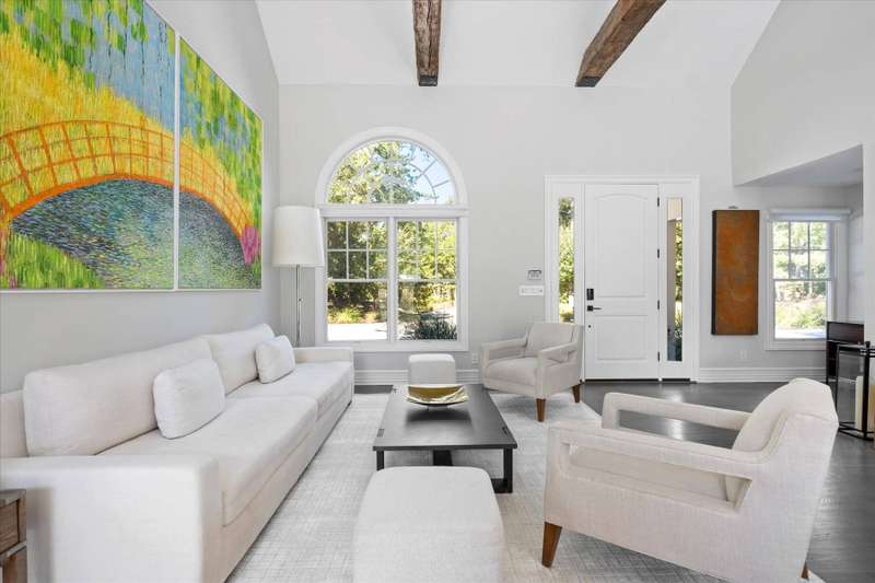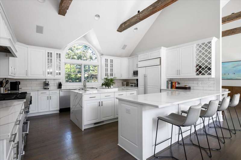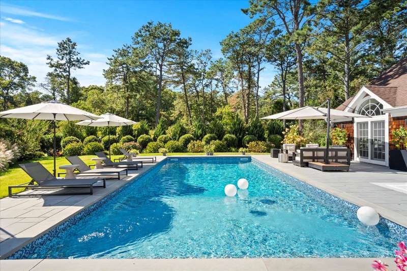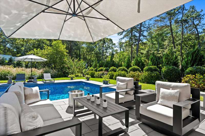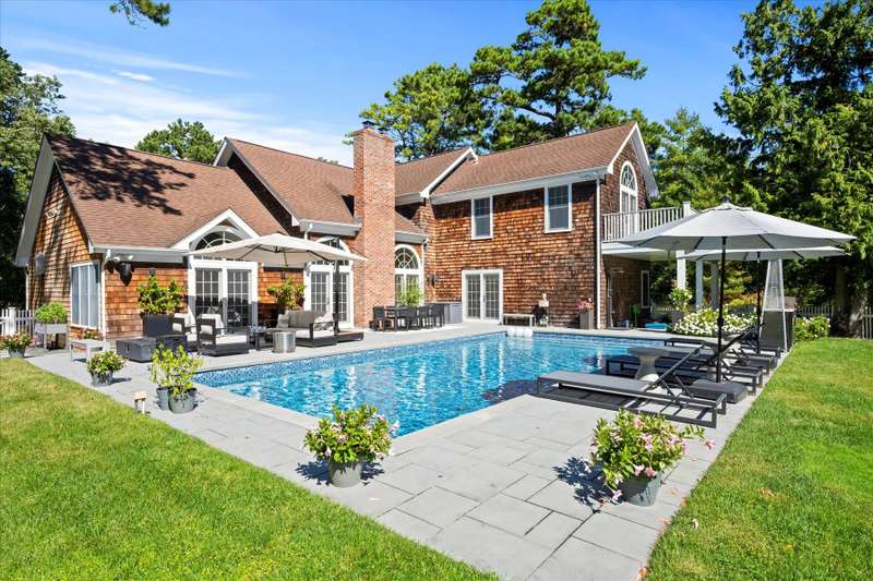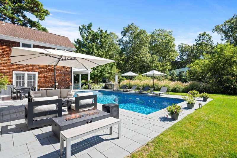 Welcome to this beautifully appointed home located in the desirable Ice Pond Estates neighborhood of Quogue. The spacious residence offers 4 bedrooms, 4 bathrooms and a large fully-equipped home office. Enter into a grand open-concept living space with two inviting seating areas and a formal dining area that comfortably seats up to twelve. The adjacent chef's kitchen is a culinary dream, boasting a 48' Viking stove with double ovens, two Miele dishwashers, Sub-Zero refrigerator, under-counter wine refrigerator, and a large island prep sink. The first floor features three bedrooms, including a newly renovated en-suite guest room with direct access to the heated pool and patio. The two additional bedrooms share a stylishly renovated full bathroom. A separate laundry room adds convenience. Upstairs the primary suite offers privacy and comfort, along with a family/home office with an en-suite bathroom. Enjoy sunny days in the beautifully landscaped backyard, featuring an 18'x36' heated saltwater pool with stadium-style steps, surrounded by lush gardens with southeast exposure that ensures all-day sunlight. Ideally located minutes from the Quogue Wildlife Preserve, village shops and a short drive to Quogue Beach. Listing ID: 902518