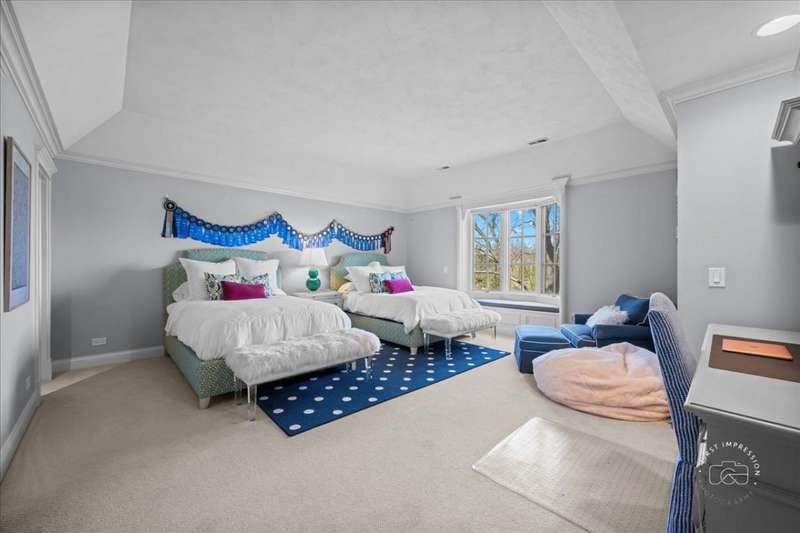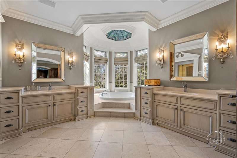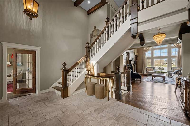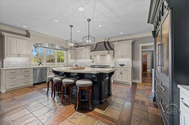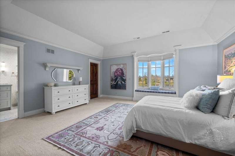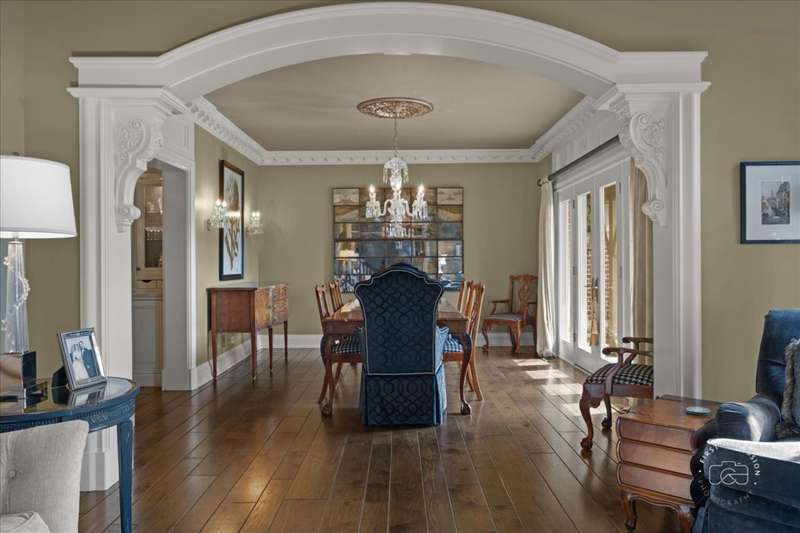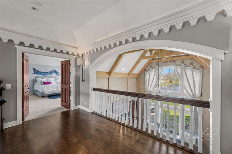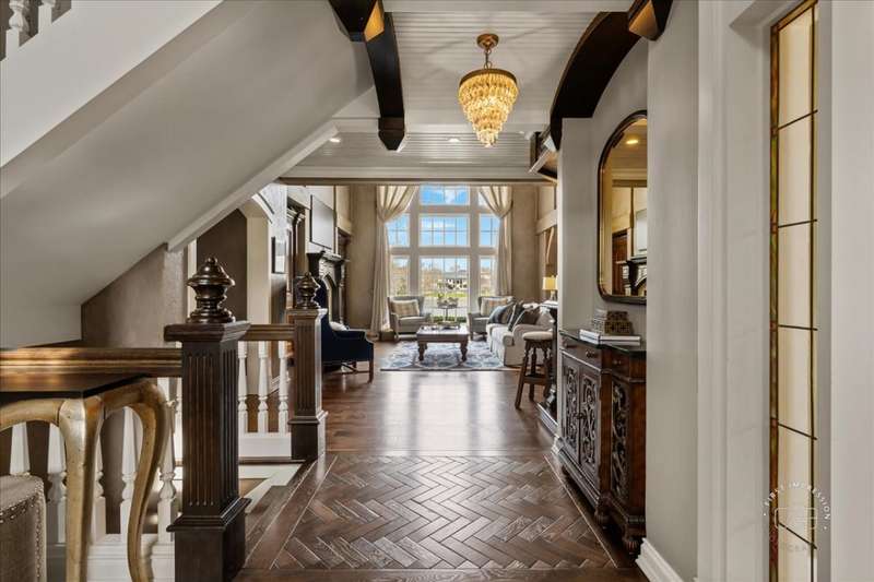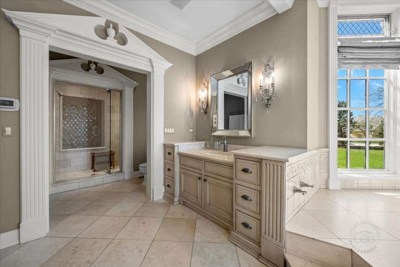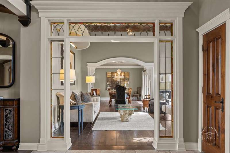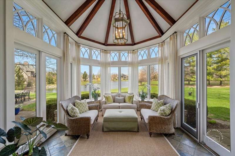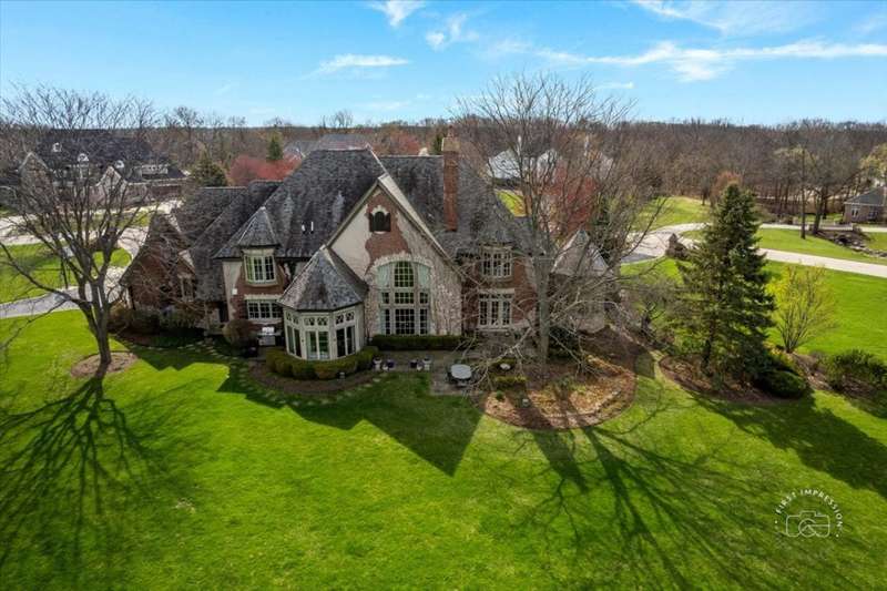 Welcome to one of the most distinguished homes in the prestigious Crane Road Estates, where timeless architecture, unrivaled craftsmanship, and luxurious amenities come together to create an extraordinary living experience. Custom built by Avondale Homes as the builder's own residence, this 8,800+ square foot masterpiece leaves no detail overlooked. From the moment you enter the grand foyer, you'll be captivated by the home's refined character-intricate millwork, arched entryways, beamed ceilings, and stunning stained glass accents echo the artistry found throughout. The formal living room and executive office set a sophisticated tone, while the flowing layout reveals thoughtfully designed spaces perfect for both daily living and elegant entertaining. The gourmet chef's kitchen is a culinary dream, featuring a professional Viking range, two dishwashers, a generous walk-in pantry, and seamless connection to the inviting family room-complete with a striking built-in bar. A spectacular sunroom offers panoramic views of the meticulously landscaped grounds, designed by Scentimental Gardens, and opens to expansive patios overlooking peaceful water vistas and tranquil gardens. The sought-after first-floor primary suite offers a serene retreat with dual walk-in closets and a luxurious spa-inspired bathroom. Upstairs, each bedroom enjoys its own en-suite bath and convenient access to a versatile bonus room-ideal for a playroom, study space, or second office. The finished lower level is an entertainer's paradise, boasting a home theater, wine cellar, full second kitchen, and additional laundry area. A stately circular driveway and three-car garage complete the home's impressive exterior. From its striking design to its unmatched attention to detail, this residence is truly one of the Fox Valley's finest offerings-a rare opportunity to own a home of such exceptional caliber.