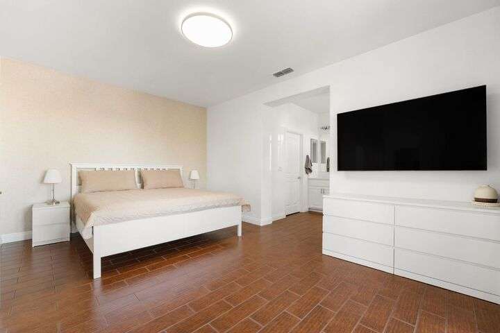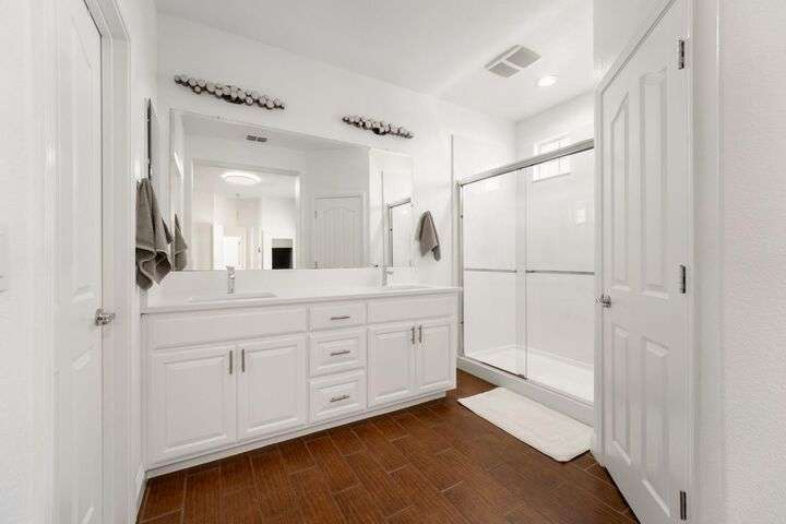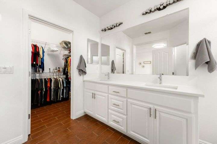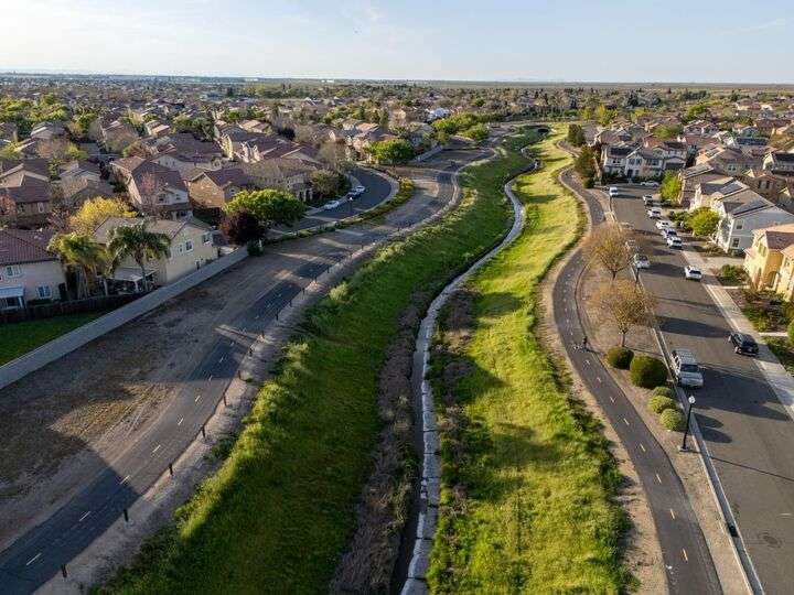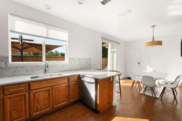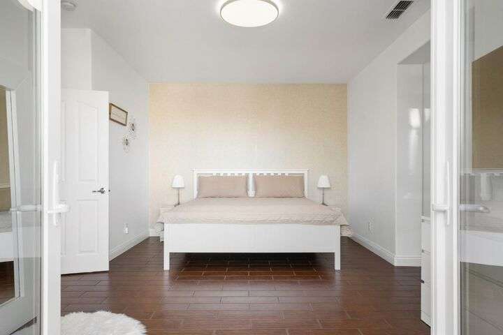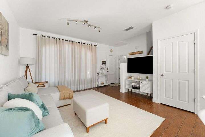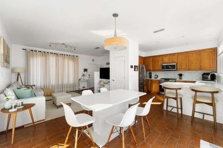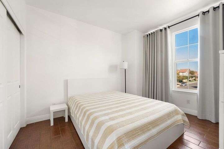 This beautifully updated home offers comfort and style from top to bottom with its light-filled open floorplan and clean lines. The kitchen is a showstopper with sleek quartz countertops, an extended tile backsplash, and all newer stainless steel appliances and fixtures. Updated bathrooms, including a luxurious oversized walk-in shower in the primary en-suite bath. Enjoy year-round comfort with a newer HVAC system and owned solar for energy efficiency. Durable earthy brown tile flooring flows through the home and is complemented by crisp white walls and updated light fixtures to provide a modern aesthetic and the perfect ambiance for everyday living & entertaining. The spacious primary suite opens to a private balcony through elegant French doors, creating a peaceful retreat with views of blue skies and treetops. The newly poured concrete patio is ready for gatherings and no rear neighbors provide for added privacy. Home comes equipped with washer, dryer, and refrigerator. Located just steps away from a scenic bike trail leading to Valley Oak Park and walking distance to Natomas' highly rated Westlake Charter School. The HOA maintains front landscaping, keeping the community pristine at all times.