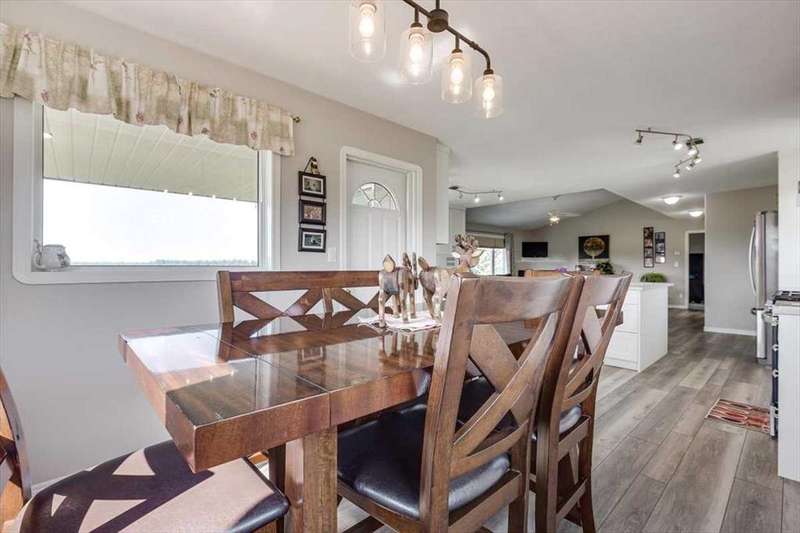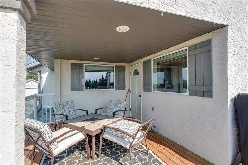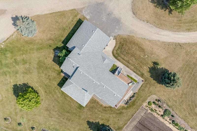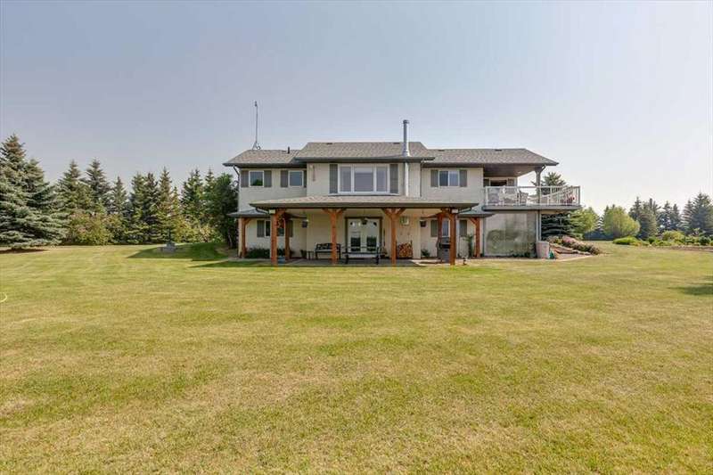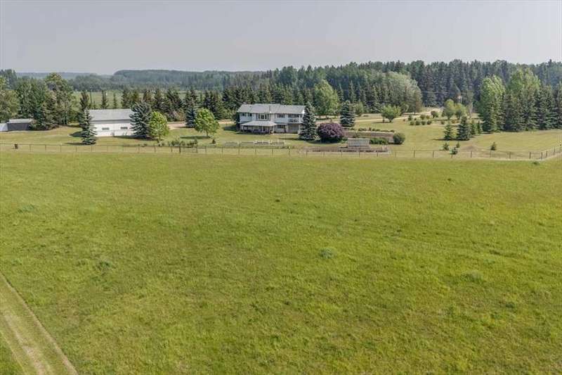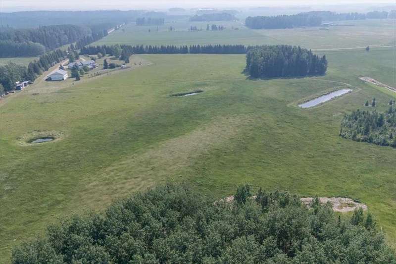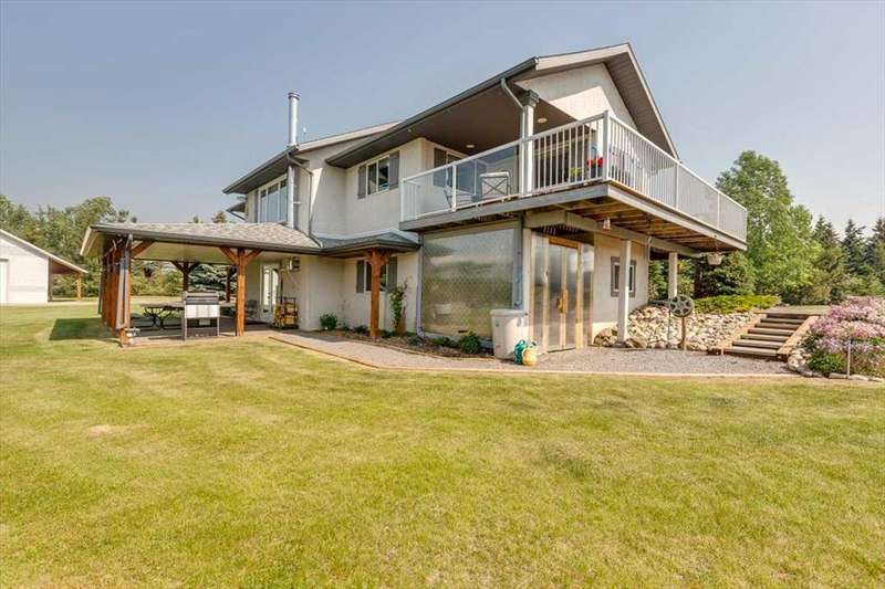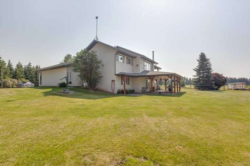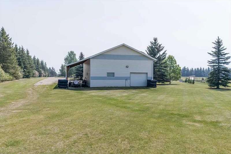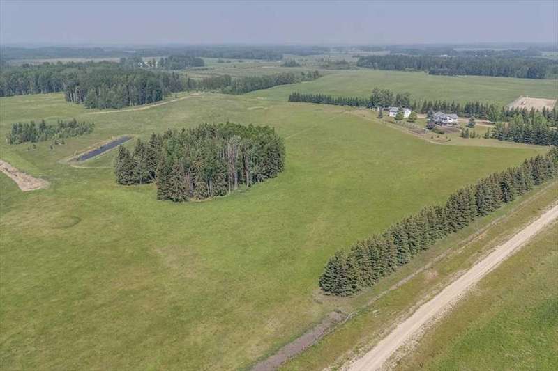 Welcome to your own private slice of rural paradise — a picturesque hobby farm and recreational quarter section that combines natural beauty, functional land use, and country charm just ½ mile off paved Oras Road. Whether you're looking to embrace peaceful countryside living, grow your own food, raise animals, or simply enjoy the serenity of wide-open spaces, this property has it all. From the moment you arrive, you’ll be captivated by the “Better Homes & Gardens” worthy yard site — a truly manicured and thoughtfully designed oasis. Rolling green lawns, established spruce and lilac shelterbelts, ornamental trees, expansive #1 black soil vegetable gardens, and artistic brick and stone landscaping create an atmosphere of effortless tranquility. A circle-drive with landscaped turnarounds completes the picture-perfect setting. The 1,256 sq ft custom bi-level home (1998) is perched on the high side of the quarter, offering sweeping panoramic views of the mountains. Inside, the main floor features vaulted ceilings, a cozy gas fireplace, and a sun-filled kitchen with a massive center island, quartz countertops, stainless steel appliances, and generous pantry storage. A sunny breakfast nook opens to a wraparound deck — the ideal spot to relax and soak in those breathtaking Alberta sunsets. The fully finished basement offers in-floor heating, a large family room with wood-burning stove, 3 bedrooms, a full bath, laundry, and walkout access to a beautiful brick-paved patio area. A dedicated under-deck gardening space keeps tools and supplies close to your gardens and greenhouse. Car enthusiasts and hobbyists will love the attached heated double garage with 9’ ceilings, dual overhead doors, utility sink, floor drain, and central vacuum. For even more space, the 39' x 32' finished shop offers radiant heat, 13'7" ceilings, two overhead doors, and an attached lean-to for storing all your equipment and toys. Several storage sheds, and a chicken coop round out the rural lifestyle dream. The land itself is just as versatile — with 40–50 acres in hay production (approx. 100 bales/year), and the balance includes lush treed areas, lowlands, three dugouts, fenced pastures, and 4 km of mowed recreation trails — perfect for walking, quadding, cross-country skiing, or simply enjoying the abundant wildlife. A high-producing water well provides an impressive 12 GPM flow of soft water, ensuring yourself, your gardens and livestock are well supported. Whether you’re seeking self-sufficiency, an inspiring family homestead, or a peaceful place to retreat and recharge, this unmatched countryside property is ready to welcome you home! UPDATE (October 18, 2025) - new pipeline (west side of property) installation project scheduled for July 2026 has been cancelled.