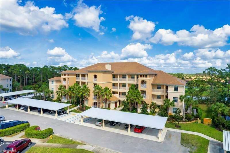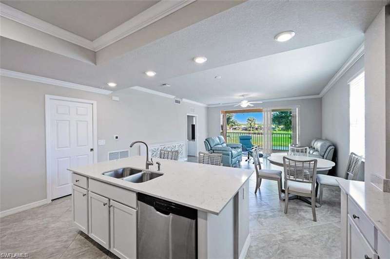 Welcome to your dream home at 10720 Palazzo Way #206 in Fort Myers, FL! This stunning end-unit condo, built in 2019, offers a perfect blend of modern luxury and comfort. With 1,406 square feet of living space, this 3-bedroom, 2-bathroom condo provides plenty of room for entertaining. The open floor plan features a contemporary kitchen with GE stainless-steel appliances, quartz countertops, pantry and a large island, seamlessly flowing into the dining and living areas. The primary bedroom features an ensuite with a walk-in closet, dual sinks and a large shower. Enjoy expansive golf course and lake views from your balcony, perfect for morning coffee or evening relaxation. The carport is equipped with golf cart charging stations. Located in the desirable and active 55+ community of Pelican Preserve, you'll have access to many amenities at its Town Center, including a resort-style pool, fitness center with indoor pool, pickleball and tennis courts, a choice of two restaurants, movie theater, dog parks, walking trails, amphitheater and more. In addition, the Palazzo neighborhood boasts its own pool with an outdoor kitchen, while The Club at Pelican Preserve offers 27 holes of golf over 3 courses (membership optional). Close to shopping, dining and entertainment, as well as easy access to I-75 and Southwest Florida International Airport. This condo is a true gem, offering a luxurious lifestyle in a vibrant community. Don't miss the opportunity to make it your own!