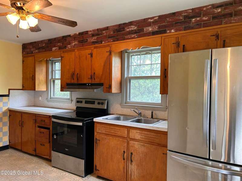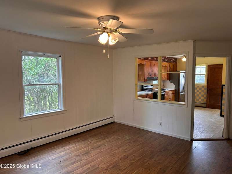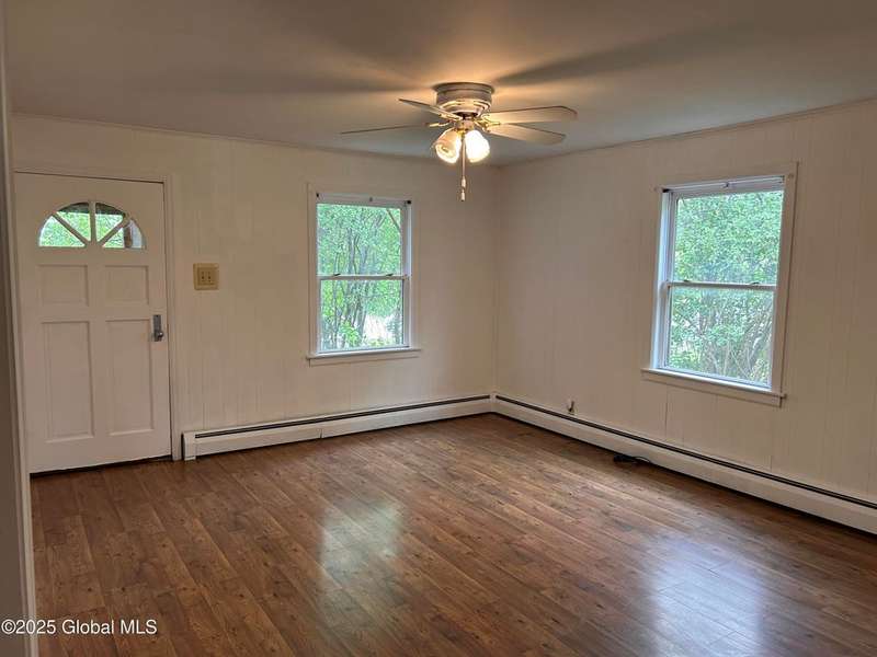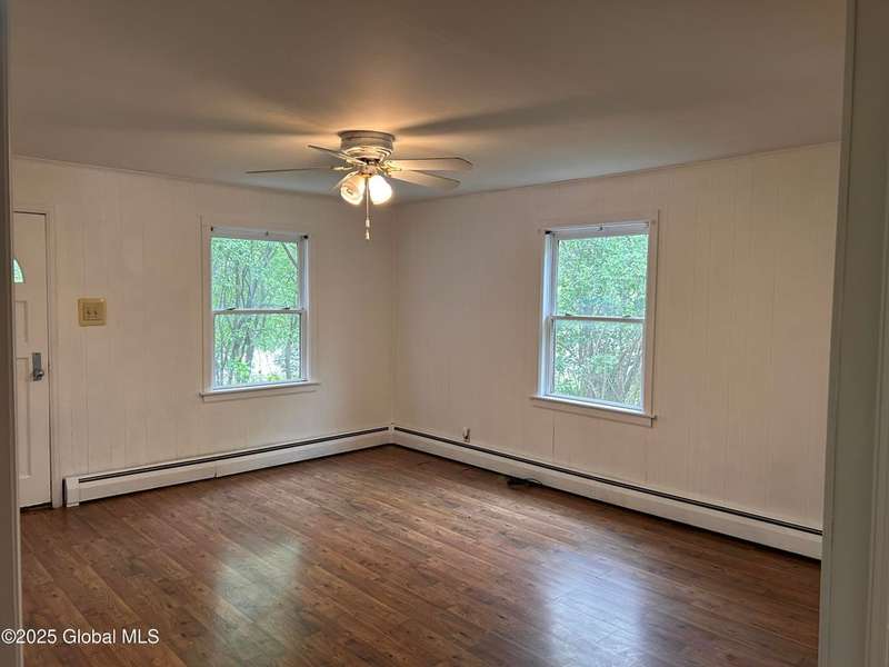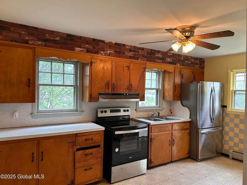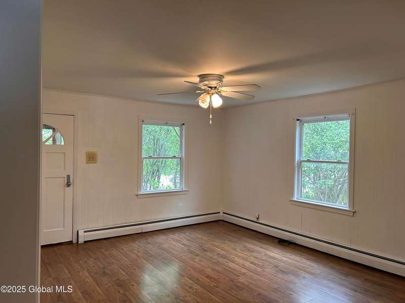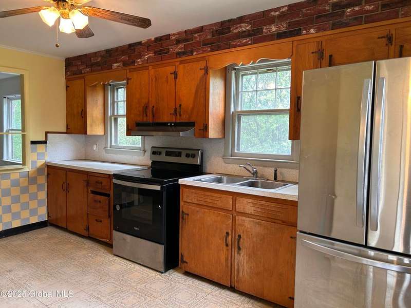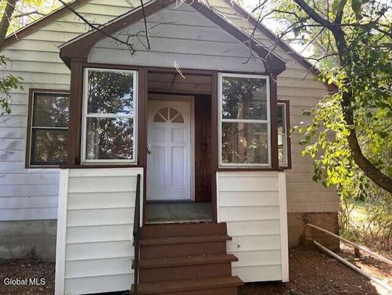 Cozy Bungalow home featuring first floor bedrooms and bath. Corner lot with detached garage, just over a half acre lot.
