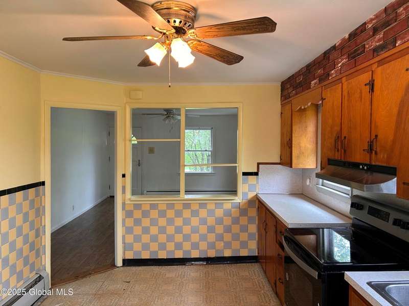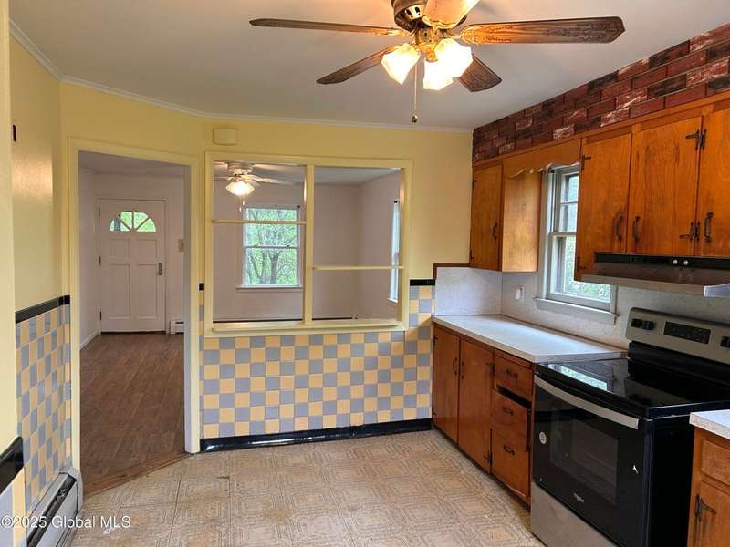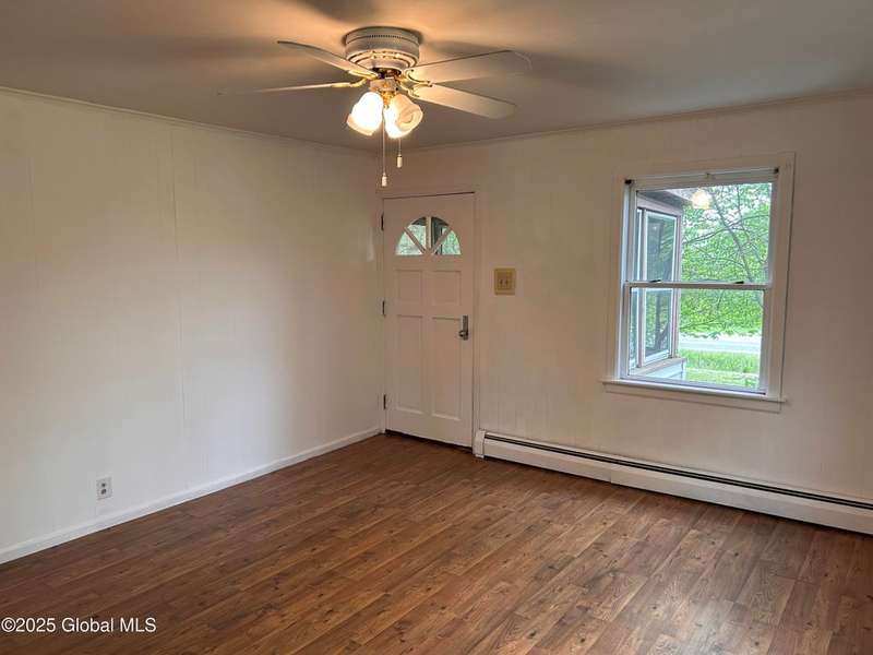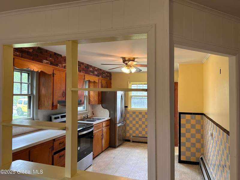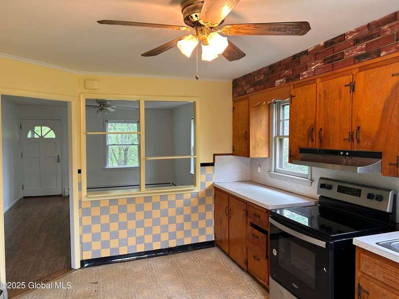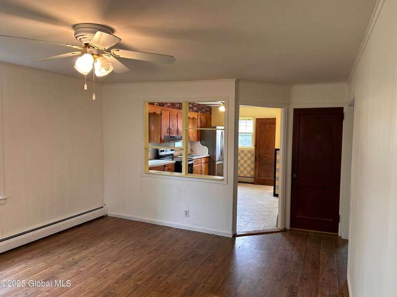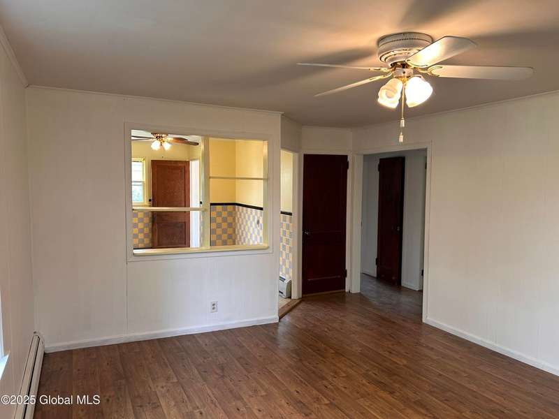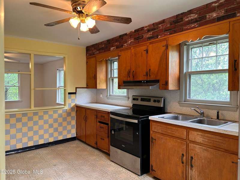 Cozy Bungalow home featuring first floor bedrooms and bath. Corner lot with detached garage, just over a half acre lot.