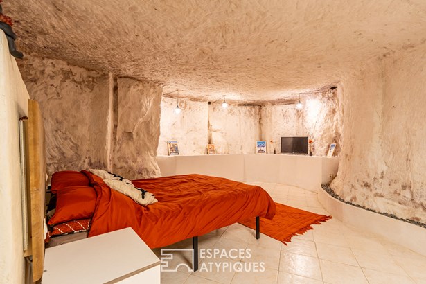 East of Tours, in the commune of Reugny, this charming troglodyte house offers 250 sqm of living space, nestled on a 1,127 sqm plot with a garden. Spacious, bright, and well-exposed, this troglodyte dwelling offers a naturally temperate living environment: cool in summer, mild in winter.