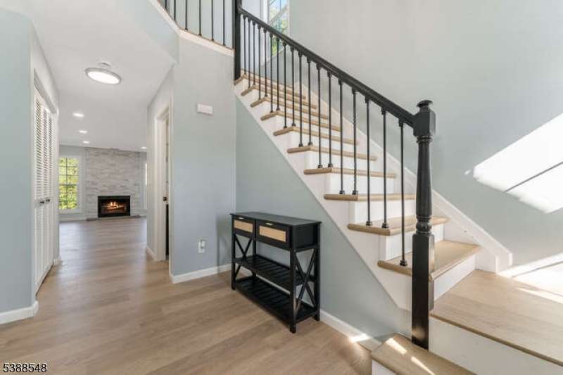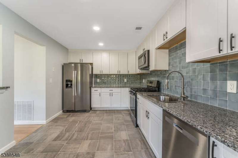 Stunning- completely updated end unit w outstanding location and direct entry garage. All new, eat in kitchen with granite countertops and ceramic tile backsplash and stainless steel appliances. All new 2.5 baths , all new flooring, 2 story foyer w new custom banister, new lighting, new stone surround for fireplace, new sliders to patio, new Thermopane windows . Great location adjoins open space . No side neighbors and near guest parking .