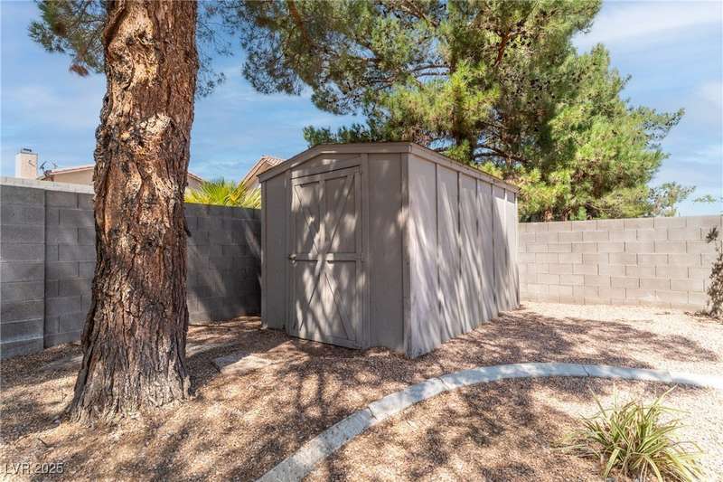 Beautiful single story home with 5 bedrooms and 2 bathrooms, NO HOA! Perfectly designed for comfort and convenience. 2 car garage and a long driveway provides plenty of room for cars, toys and even potential RV parking. The charming front porch welcomes you, while synthetic grass and mature landscaping with vibrant greenery in both front and backyard add stunning curb appeal. The HUGE backyard is an entertainer’s dream, complete with a covered patio and storage shed. Inside, enjoy shutters throughout, a cozy living room with vaulted ceilings and a gas fireplace, plus a mix of tile, laminate, and carpet flooring. The kitchen boasts a breakfast bar, walk-in pantry, and all included appliances. The big primary suite features a walk-in closet plus an additional closet for extra storage. With its unbeatable location near shopping, schools, and freeway access, this home offers the perfect blend of style, space, and functionality— must see this home today!