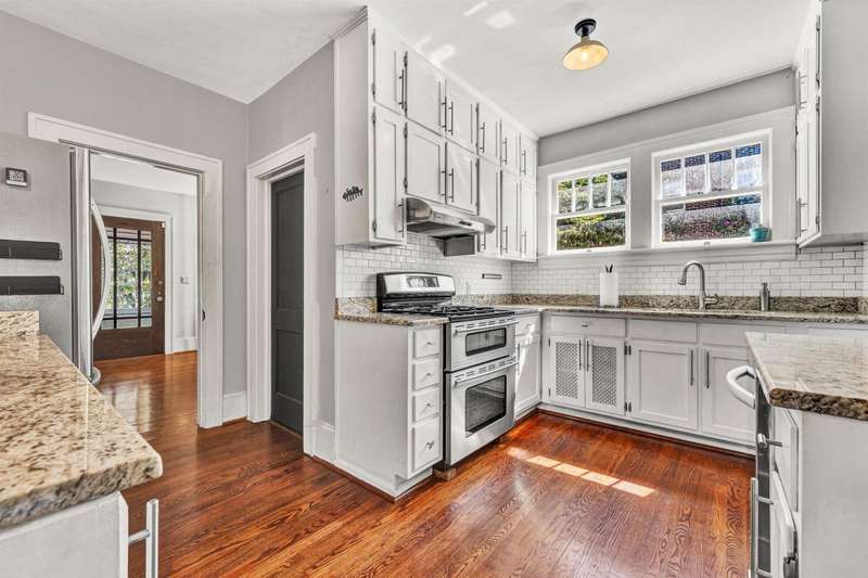Enjoy swinging on your front porch or taking a stroll to the Grandin Village or around the neighborhood. This home has had all the major items taken care of for you to last many more years. Wonderful Kitchen has been totally redone with an awesome walk in pantry, beautiful granite countertops, newer cabinetry and appliances, small bar top space for extra space and a nice sized dining room. Living room with fireplace, additional rec room area with projector screen, built in book shelving, this room could potentially be a master bedroom if needed in the future, also has a full bath. Upper level has 3 bedrooms, Full bath remodeled, 4th room could be additional bedroom/office or use as laundry room or work out room. laundry hookups are upper & lower level. Walk up attic also has potential
