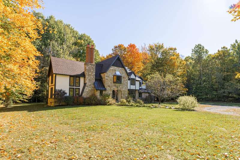 Discover this beautifully updated Tudor-style home set on just over 14 acres in the prestigious Mountain Ranches. The spacious living room features soaring ceilings and a cozy fireplace, perfect for relaxing or entertaining. With four bedrooms, including a generous primary suite complete with a private balcony overlooking the grounds, this estate combines timeless charm with modern comfort in a truly breathtaking setting.