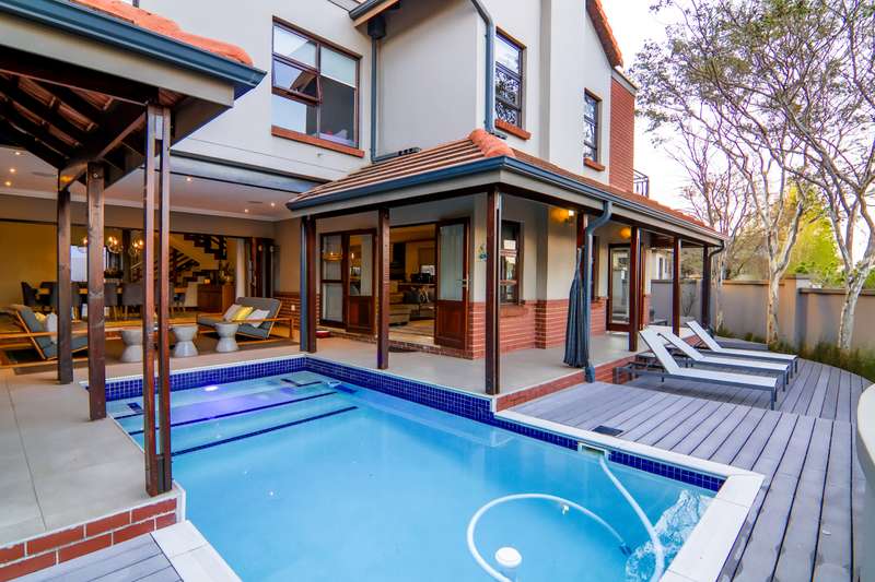 DUAL MANDATE A Home That Redefines Luxury Living Nestled along the prestigious greenbelt, this exquisite corner home offers unparalleled privacy, with only one neighbouring property to the right while the rest is enveloped by unspoiled natural views. A grand driveway welcomes you, leading to an impressive three-car garage, each space designed with thoughtful functionality. The double garage features a dedicated laundry nook, complete with appliance connections and a kitchenette for added convenience. Meanwhile, the single garage boasts a pull-through to the back garden, ideal for securely storing a trailer or accessing garden tools with ease. Stepping inside, you are greeted by an elegant fishpond, a tranquil feature designed in compliance with SANS regulations. The grand double doors open into a sophisticated dining area, where dramatic custom pendant lighting casts a warm glow over the space. The seamless flow continues through expansive stacking doors, revealing a breathtaking outdoor entertainment area, a heated salt-chlorinated pool, and uninterrupted views of the lush greenbelt. To the left, a statement staircase ascends to the first floor, its dark wood balustrades intertwined with stainless steel—a testament to the home’s sophisticated design. The kitchen is a chef’s dream, centered around a custom island with a four-seater breakfast nook, a prep bowl, and ample cabinetry. Designed for both form and function, it accommodates a double fridge, gas hob, eye-level microwave, and oven. Thoughtfully designed, additional cupboards are tucked beneath the staircase, ensuring seamless storage solutions. The scullery is equipped for a dishwasher, while washing appliances are conveniently placed in the garage’s dedicated laundry area. Adjacent to the kitchen, the informal TV lounge offers a warm and inviting space, perfect for intimate family moments, with direct access to the covered patio that overlooks the pool and greenbelt. To the opposite side, a sliding door leads to the ultimate entertainment area, featuring a: • Built-in Chad-O-Chef 6-burner gas braai with rotisserie • Space for two bar fridges & ample cabinetry • Matrix 4-channel, 6-zone audio/visual system for premium sound distribution • Composite deck leading to a stunning boma area, an entertainer’s dream The swimming pool is the heart of the outdoor experience, perfectly positioned between the TV lounge, dining area, and a private lounge with a fireplace. Beyond the pool, an additional covered deck offers the perfect space for alfresco dining or lounging, surrounded by immaculately landscaped gardens and the tranquil sounds of nature. A built-in vegetable and herb garden with irrigation adds to the self-sufficient luxury of this outdoor sanctuary—a true retreat from city life. ________________________________________ A Home of Comfort and Elegance The guest suite, conveniently located on the ground floor, offers a private entrance with direct access to a landscaped front garden. It features an ensuite bathroom with a shower, as well as an additional separate guest bathroom in the passage for visitors’ convenience. Past the guest suite, a private study with built-in cupboards provides the perfect retreat for work or quiet contemplation, also featuring direct garden access. Upstairs, the first-floor landing is designed to showcase art displays, adding a sophisticated touch to the home’s interior. To the left, the main bedroom is a true sanctuary—spacious, serene, and boasting uninterrupted greenbelt views. The walk-in closet leads into a luxurious ensuite bathroom, where a glass-domed ceiling floods the space with natural light, illuminating: • Freestanding bath & double basins • Spacious walk-in shower • Separate toilet with bidet Every detail has been curated for ultimate relaxation and indulgence. A spacious PJ lounge upstairs serves as a retreat for intimate family time, while two well-appointed family bedrooms offer **comfort Location & Accessibility Midlands Estate is ideally located in Centurion, Gauteng, offering a central position between Johannesburg and Pretoria. The estate provides easy access to major transport routes, including the N1 (Ben Schoeman Highway) and Nelmapius Drive, ensuring seamless connectivity for residents. Designed with well-integrated road infrastructure, the estate ensures convenient commuting and accessibility to surrounding areas. Key Features • Security: Midlands Estate is a highly secure residential community, featuring robust security measures to ensure the safety and peace of mind of its residents. • Nature & Green Spaces: The estate embraces an eco-friendly lifestyle, boasting extensive green belts, scenic dams, and parks, offering a tranquil and nature-focused living environment. • Amenities: o Indoor heated swimming pool, outdoor pools, and large recreational parks o Walking trails and play parks designed for an active lifestyle o Exclusive facilities such as Hyto Tyto Playpark & Restaurant, Arabesque Ballet Studio, and Gauteng Dance Studios • Community & Lifestyle: o Midlands Estate fosters a strong sense of community, with social events, shared recreational spaces, and family-friendly activities o Part of the renowned Midstream Estate, which consists of various individual security estates, each with its own character o Designed for those seeking a modern yet serene lifestyle, with a focus on safety, comfort, and family-oriented living Midlands Estate is one of the most sought-after residential addresses in Centurion, offering a secure, family-friendly environment while maintaining a balance of nature, luxury, and convenience. For those looking for a prestigious estate lifestyle in a central location, Midlands Estate is truly a lifestyle of choice. Pet Friendly: 2 Dogs, Unfortunately no Cats allowed in Midstream