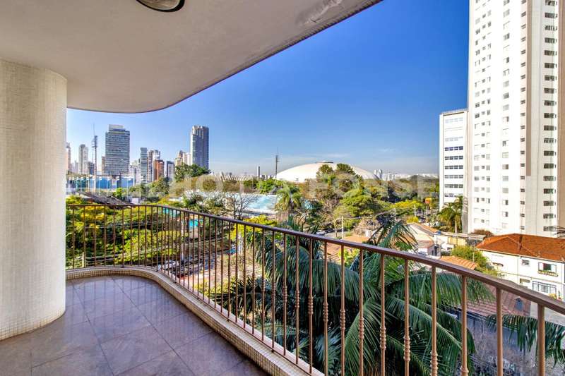 Apartamento acolhedor com vista para o Parque Ibirapuera: 4 quartos, incluindo 1 suíte com closet, sala espaçosa de 2 ambientes, varanda, cozinha com copa auxiliar, quarto de serviço, depósito e 3 vagas de garagem.