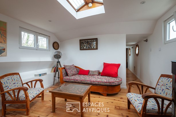 The interior reveals a warm atmosphere, designed for the well-being of the occupants. Bathed in light, the living room is enhanced by a wood-burning stove, providing optimal comfort in all seasons. The open kitchen, fully fitted and equipped (with washing machine), blends harmoniously into this living space, creating a welcoming and functional space. A hallway then leads to three comfortable bedrooms, ideal for peaceful nights after a day in the great outdoors. A bathroom and a separate toilet complete this floating accommodation.