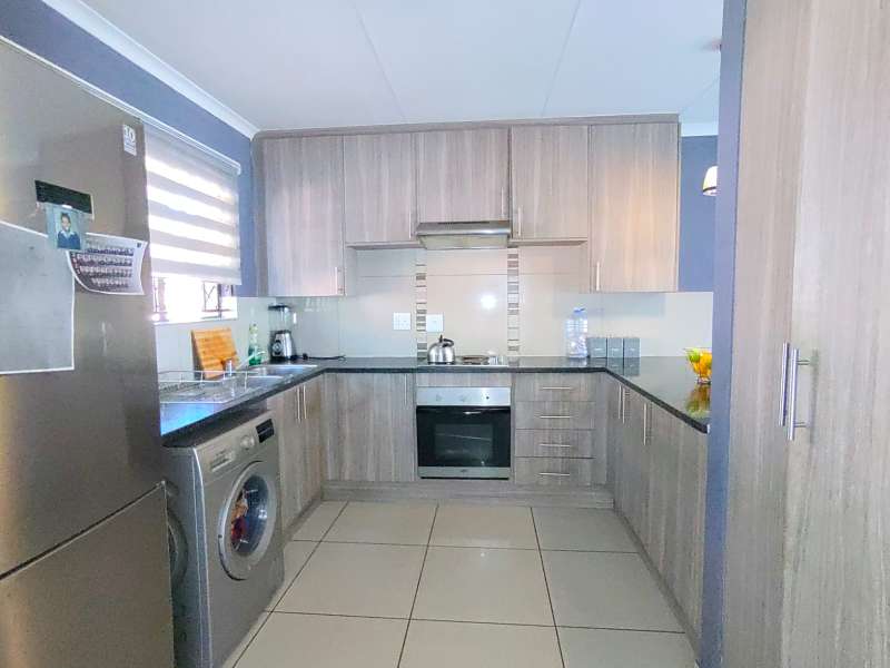 Welcome to your dream home! This meticulously maintained 3-bedroom, 2-bathroom townhouse offers the perfect blend of contemporary design and functional living spaces, spread over a generous 133 sqm. Step into the light-filled lounge that seamlessly flows into a sleek, modern kitchen. Featuring granite countertops, ample storage, and a state-of-the-art undercounter oven, this space is perfect for both everyday living and entertaining. Three well-sized bedrooms provide the ideal sanctuary for rest and relaxation. The master bedroom boasts an en-suite bathroom for added privacy and convenience. Two modern bathrooms with high-quality finishes ensure comfort and luxury. Enjoy outdoor dining or simply relax on the charming patio, perfect for unwinding after a long day. A double garage offers secure parking and additional storage space. Benefit from the cost-saving and environmentally friendly solar geyser and prepaid electricity. Situated close to Ninapark Shopping Complex and just a short drive to Pretoria North CBD, this home offers easy access to shopping, dining, and all necessary amenities. Don’t miss out on the opportunity to own this exquisite townhouse in a sought-after location. Schedule a viewing today and take the first step towards making this house your home