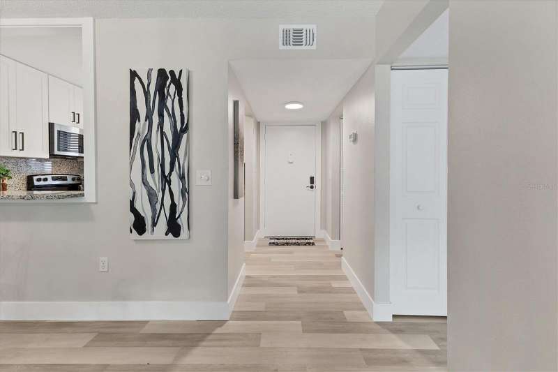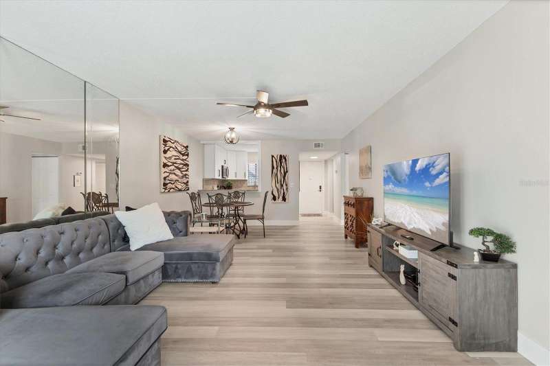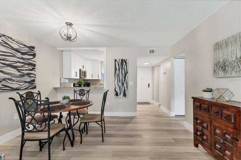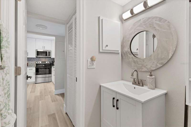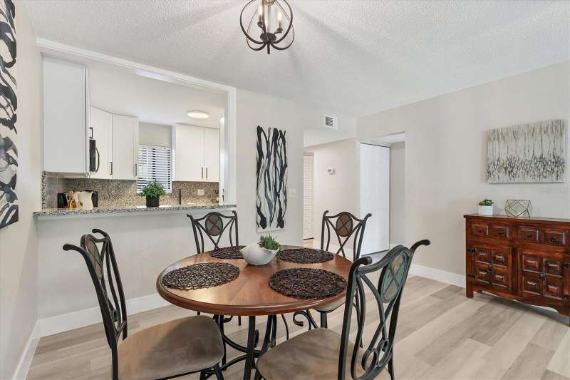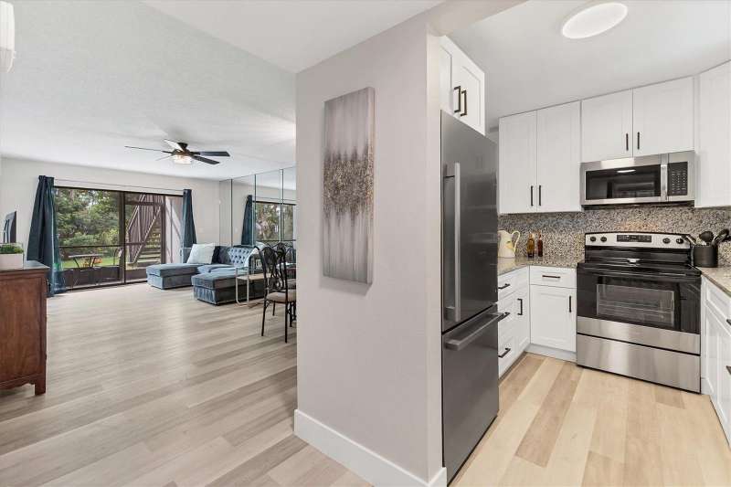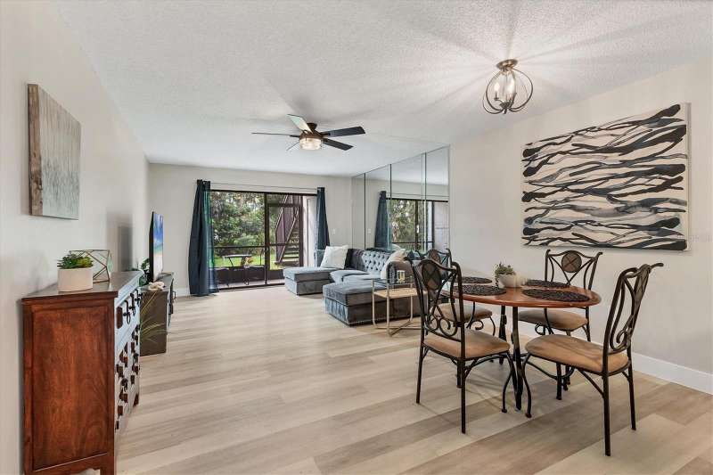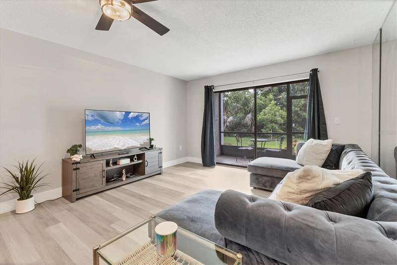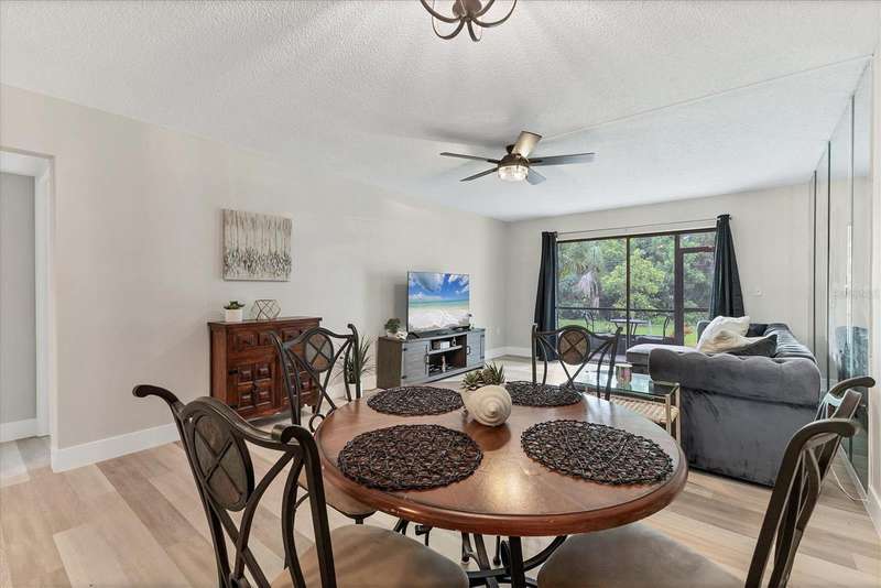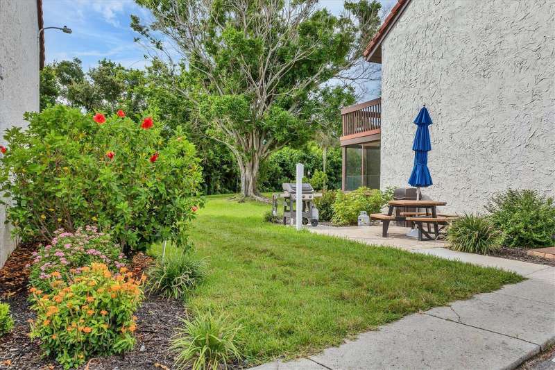 Fully furnished and move-in ready, this delightful ground-floor condo at Castel Del Mare is perfectly situated on the mainland side of Little Sarasota Bay, right along the Intracoastal Waterway. Just a short stroll or bike ride across the bridge leads you to the stunning white quartz sands of Siesta Key Beach — yet this property offers a rare chance to own in paradise at a fraction of Siesta Key prices. Positioned directly on the waterfront, Castel Del Mare delivers a true resort-style living experience, with an impressive array of amenities including a circular bayside pool, a lap pool by the clubhouse, a fishing pier, kayak launch and storage, bayside gazebo, boardwalk, outdoor grilling areas, tennis/pickleball court, shuffleboard along the water, and an on-site property manager. Tucked away from the main road and offering serene wooded views, this ground-level unit means no stairs or elevators to worry about. It’s ideally located just steps from the clubhouse and lap pool for added convenience. The spacious open-concept living and dining area allows for comfortable entertaining, with sliding doors opening to a private, screened-in lanai—perfect for relaxing in the sun or stepping right out to the backyard and nearby tennis court. A storage closet off the lanai is perfect for beach gear. The kitchen includes a handy pass-through window to the living area, making serving and socializing a breeze. The bedroom features a walk-in closet, and an ensuite bathroom with a tub/shower combo. A large south-facing window adds natural light and more views of the trees outside. Three ceiling fans throughout the unit help maintain a cool, coastal breeze. Located just next door to a charming waterfront marina, shops, a waterfront dining spot, and a boat club with options for memberships in boating, fishing, and watersports. Plus, you’re only five minutes from Publix, pharmacies, and a variety of excellent mainland restaurants. Whether you're looking for a full-time residence, seasonal getaway, or rental opportunity, Unit #102 at Castel Del Mare is a fantastic find. Enjoy the relaxed waterfront lifestyle today!