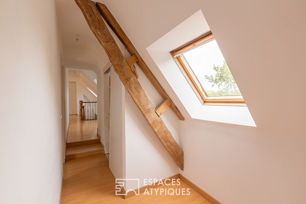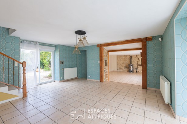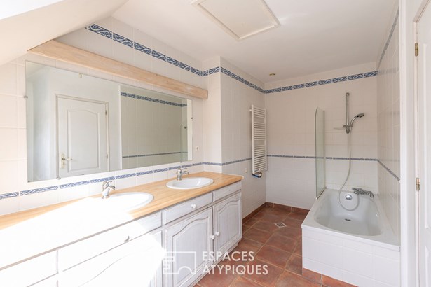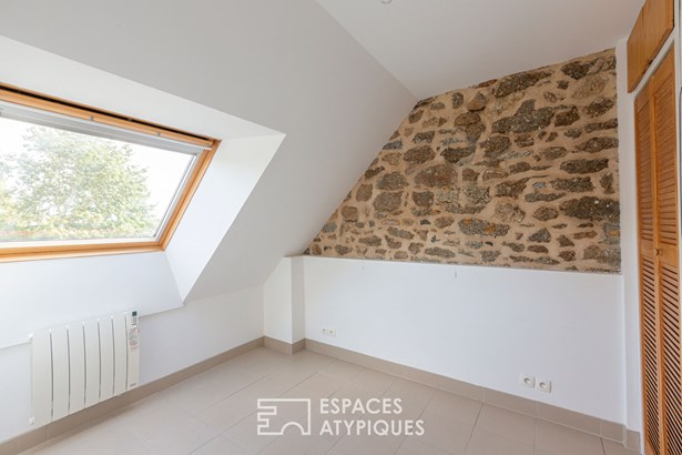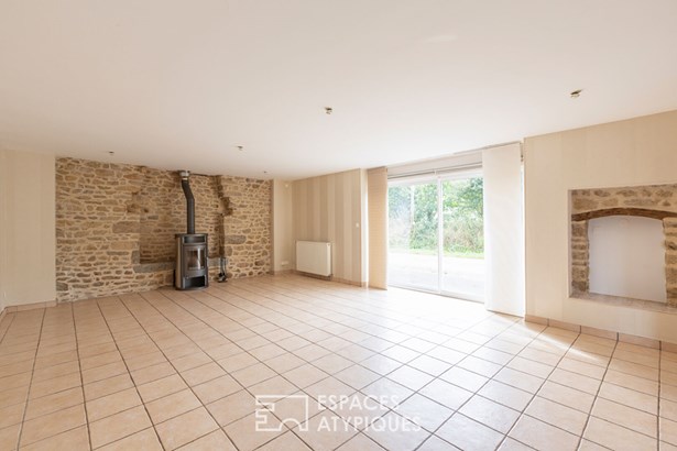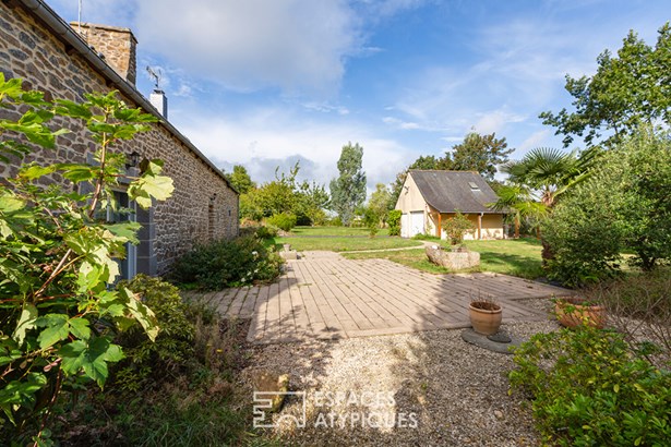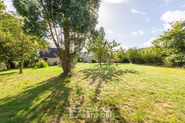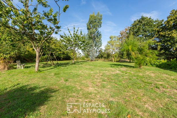 The garden, embellished with an orchard, houses a large garage topped with attic space, offering great development opportunities according to needs. A unique place where generous volumes, nature, and multiple accommodation possibilities come together to offer a rare quality of life, somewhere between a family home and a gite project.