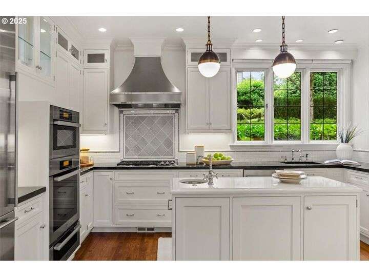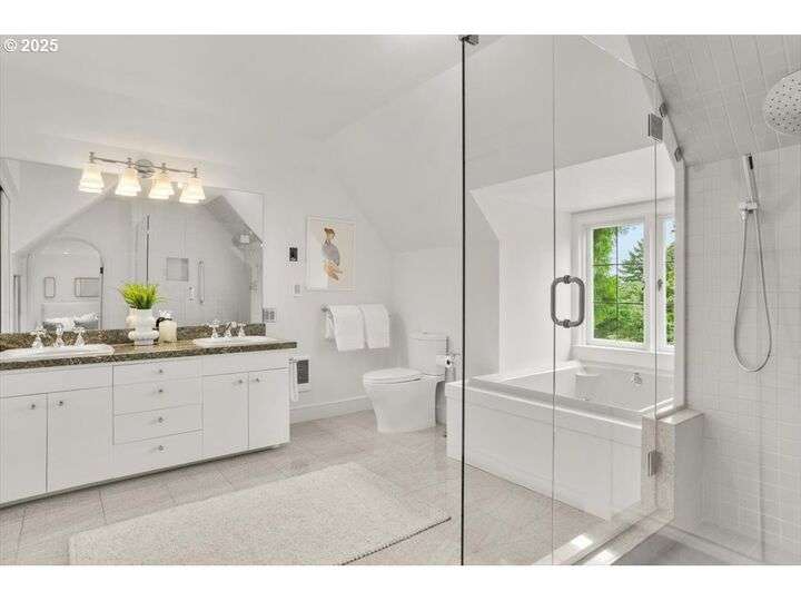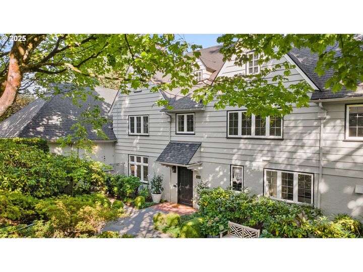 Discover refined elegance and exceptional craftsmanship in this distinguished Portland Heights residence, originally designed by Architect Jamieson Parker. Nestled on a beautifully landscaped and oversized lot along one of the neighborhood’s most prestigious streets, this home blends classic architectural charm with thoughtful modern updates. Inside, rich details abound—from graceful crown molding and warm wood floors to multiple marble fireplaces and custom built-ins. The main level offers formal living and dining rooms, a paneled family room, and French doors to the covered balcony. At the heart of the home is a stunning designer kitchen featuring high-end appliances and an adjoining breakfast room, perfect for casual dining. The expansive primary suite serves as a luxurious retreat with a fireplace and a spa-inspired bathroom with soaking tub and walk-in shower. A finished top floor adds versatility, while the lower level features a second family room or separate living area with outdoor access and a full bathroom, ideal for guests, work-from-home needs, or media space. Surrounded by lush gardens, the exterior has been thoughtfully designed and executed. The front courtyard, covered deck, flat yard, multiple patios and vignettes provide a variety of outdoor spaces. Situated near top-rated schools, trails, parks, and city conveniences, this exceptional residence offers a rare opportunity to own a true Portland classic that seamlessly balances timeless charm with modern livability. •••PROPERTY IS BACK ON THE MARKET AT NO FAULT OF HOME. THE BUYER UNEXPECTEDLY LOST JOB AND THEREFORE COULDN'T QUALIFY FOR FINANCING. [Home Energy Score = 1. HES Report at https://rpt.greenbuildingregistry.com/hes/OR10240488]