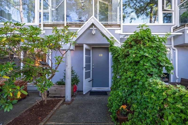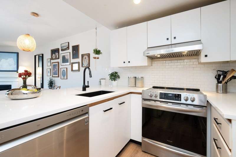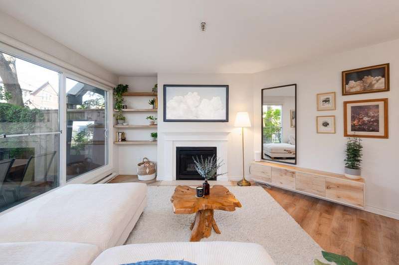 W/ its own private entry, 2-beds, 2-baths, & two patio, this ground floor unit boasts a highly functional open-concept layout with 910 sqft of interior space, + 543 sqft of outdoor space. Updated throughout, w/ wide-plank flooring & sophisticated finishings. The bright kitchen features sleek cabinetry, S/S appliances, & breakfast bar. The living room includes floating shelving, gas F/P, & sliding doors leading to the front patio & providing seamless integration of indoor/outdoor living. The generous primary bed offers a walk-through closet, spa-like ensuite, & sliding doors to the rear S-facing patio. The secondary bed & bath are similarly well appointed. Includes ample in-suite storage, in-suite laundry, patio storage shed & U/G parking. OPEN HOUSE: THUR OCT 2 @ 5-6pm & SUN OCT 5 @ 2-4pm
