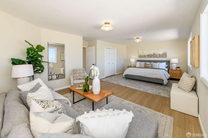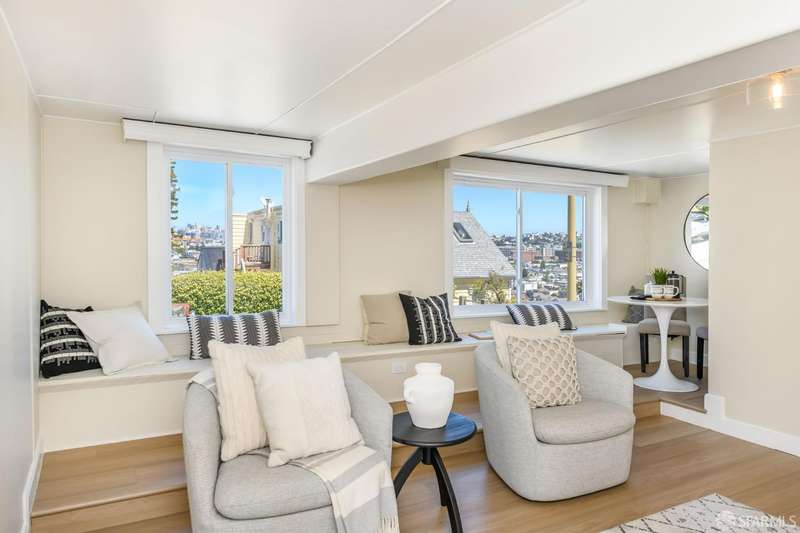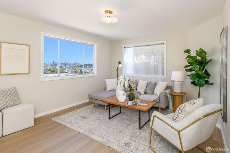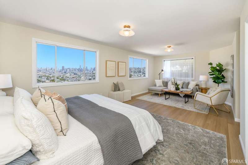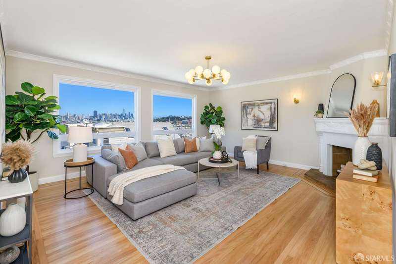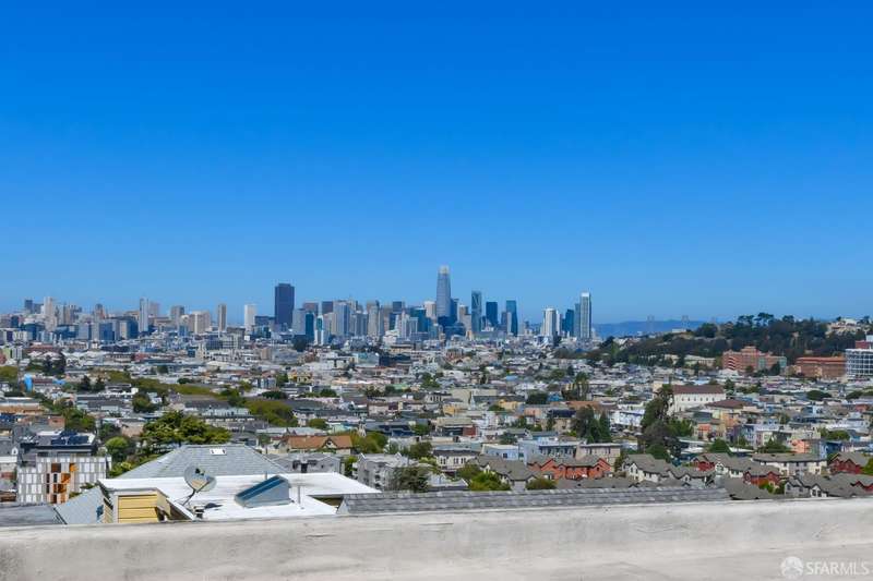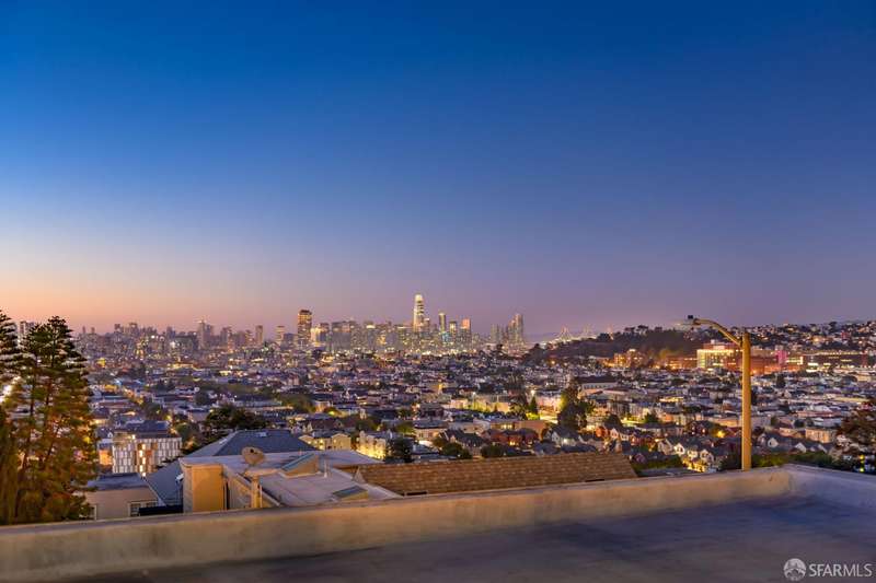 Perfectly positioned on the coveted North Slope of Bernal Heights, 62 Aztec presents a rare blend of timeless sophistication, flexibility, and iconic San Francisco views. Set near the end of a tranquil non-through street, this residence showcases sweeping panorama views across the San Francisco skyline and Bay. Behind its understated exterior lies a spacious home designed to meet the demands of modern living. Featuring 3 bedrooms plus a flexible studio level, 2 bathrooms, abundant storage, and a 4-car garage, the property offers functional spaces including a laundry room, an office nook and a private back patio ideal for entertaining or unwinding. Expansive windows fill the interiors with natural light, highlighting dramatic outlooks from both the living room and the spacious primary bedroom. Situated at the end of Aztec street are the Aztec Steps which provide convenient access to local amenities including Charlie's Cafe, Precita Park Cafe & Grill, the green space of Precita Park and the scenic trails of Bernal Hill. Commuters will be pleased to find the 101 and 280 freeways easily accessed at either end of Bernal Heights. Available for the first time in 100 years, 62 Aztec is a rare opportunity to claim a trophy residence for generations to come.