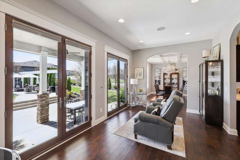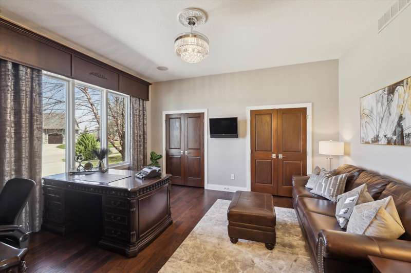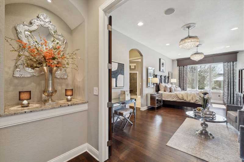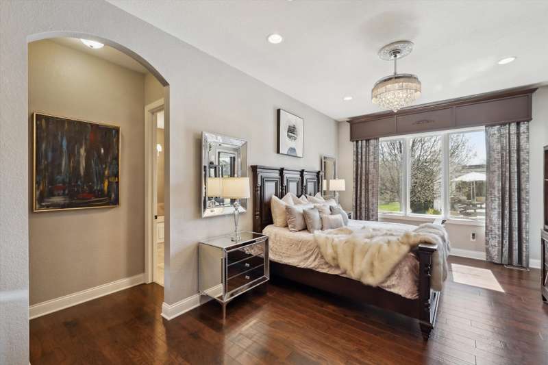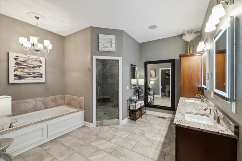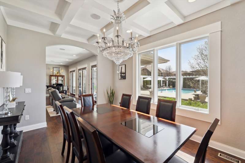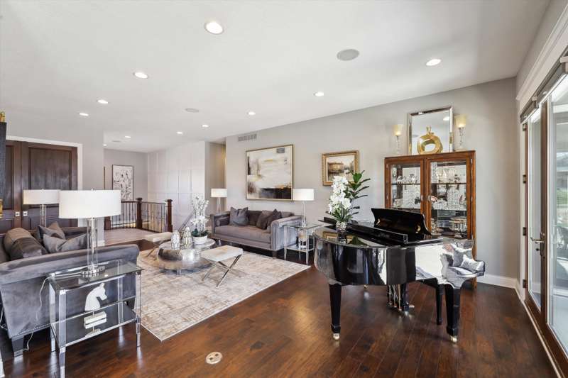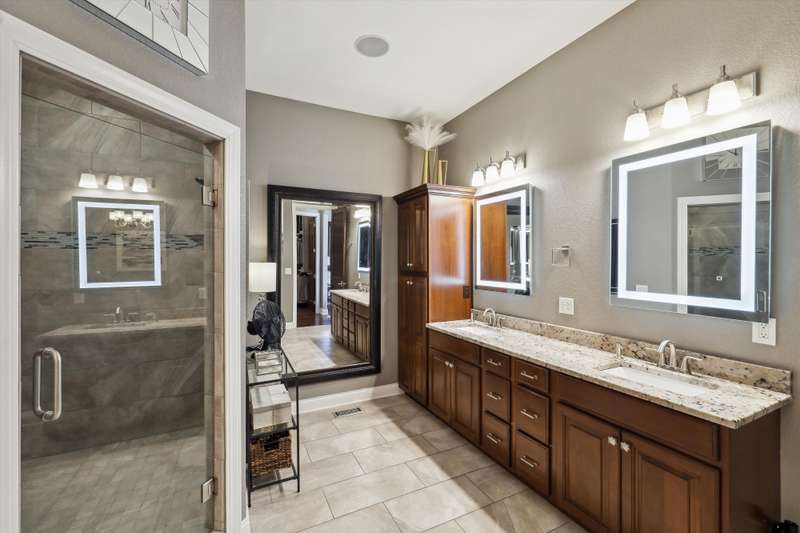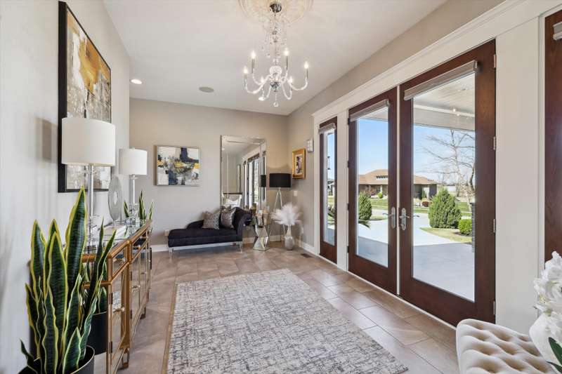 A private heated in-ground 20ft x 36ft custom vinyl pool with LED multi color lighting, dancing fountains, auto-cover, and smartphone controls is just one of the highlights of this 5,761 SF ranch in The Ridge at Echo Valley. The home has 4 BRs, 3.5 baths and an oversized 1,011 SF side entry garage. This sprawling ranch is set on 2 lots, totaling 0.67 acres. An elegant circle drive with large operational concrete fountain and covered portico is a convenient and stylish way for guests to arrive. Inside the front double door entry, you will find an inviting, bright and spacious entry way then on to the eat-in kitchen with an oversized island that seats 6, cook top with outside exhaust fan, beautiful cabinetry. The fam rm showcases a large stone gas fireplace with built-ins. There is a formal din rm & liv rm for entertaining and room for a grand piano. The spacious primary BR has an intimate sitting area, large walk-in closet with 40 pair shoe rack, island with cabinets and private washer and dryer unit. The primary bath is a room of its own, with 2 sinks, whirlpool tub, and huge shower with dual showering areas and rain head. The other BR on the first floor has its own full bathroom. The main floor has 10ft ceiling and 8ft doors. The finished basement is like another home with 2 more BRs, full bath, theater room with screen, exercise room, plus lots of family room and rec room areas. This is great for entertaining and vacationing at home. See it soon!