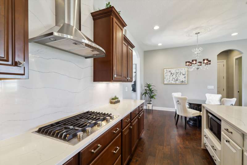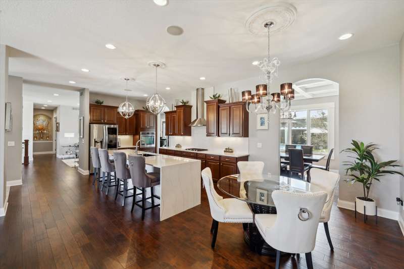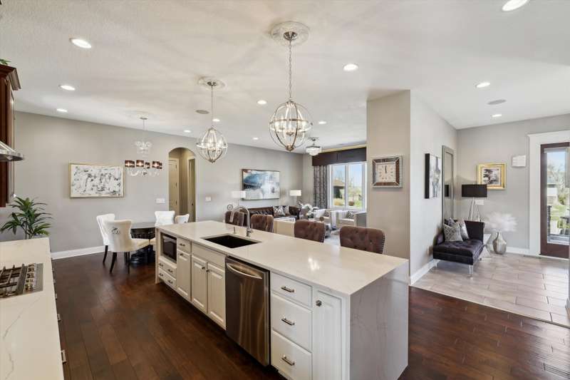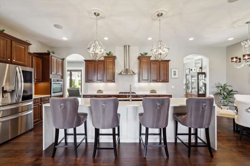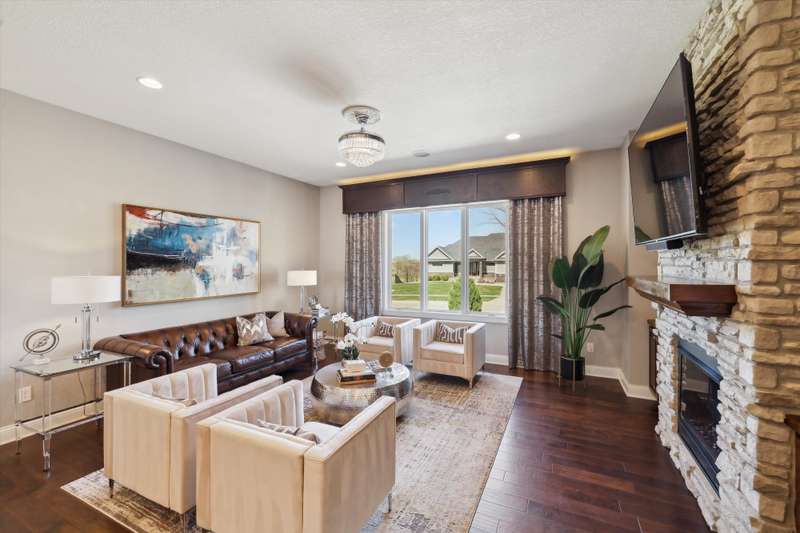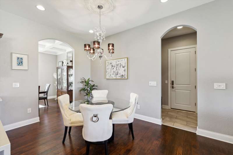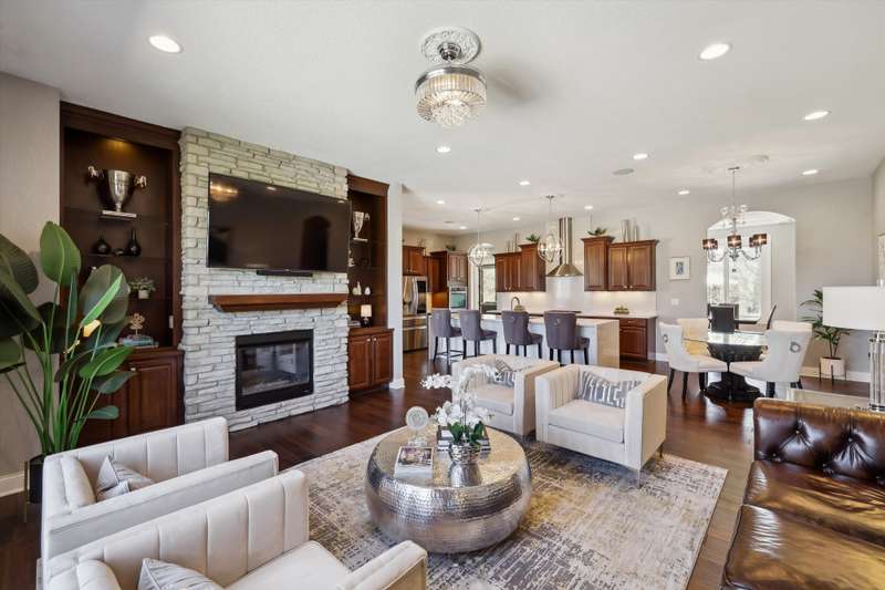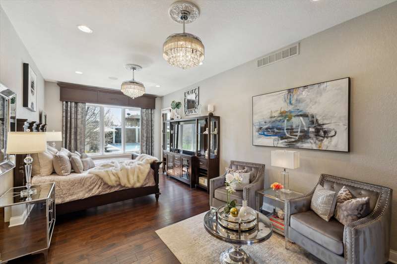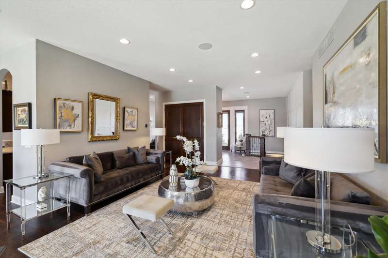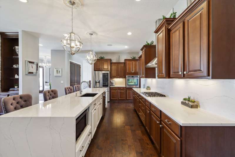 A private heated in-ground 20ft x 36ft custom vinyl pool with LED multi color lighting, dancing fountains, auto-cover, and smartphone controls is just one of the highlights of this 5,761 SF ranch in The Ridge at Echo Valley. The home has 4 BRs, 3.5 baths and an oversized 1,011 SF side entry garage. This sprawling ranch is set on 2 lots, totaling 0.67 acres. An elegant circle drive with large operational concrete fountain and covered portico is a convenient and stylish way for guests to arrive. Inside the front double door entry, you will find an inviting, bright and spacious entry way then on to the eat-in kitchen with an oversized island that seats 6, cook top with outside exhaust fan, beautiful cabinetry. The fam rm showcases a large stone gas fireplace with built-ins. There is a formal din rm & liv rm for entertaining and room for a grand piano. The spacious primary BR has an intimate sitting area, large walk-in closet with 40 pair shoe rack, island with cabinets and private washer and dryer unit. The primary bath is a room of its own, with 2 sinks, whirlpool tub, and huge shower with dual showering areas and rain head. The other BR on the first floor has its own full bathroom. The main floor has 10ft ceiling and 8ft doors. The finished basement is like another home with 2 more BRs, full bath, theater room with screen, exercise room, plus lots of family room and rec room areas. This is great for entertaining and vacationing at home. See it soon!