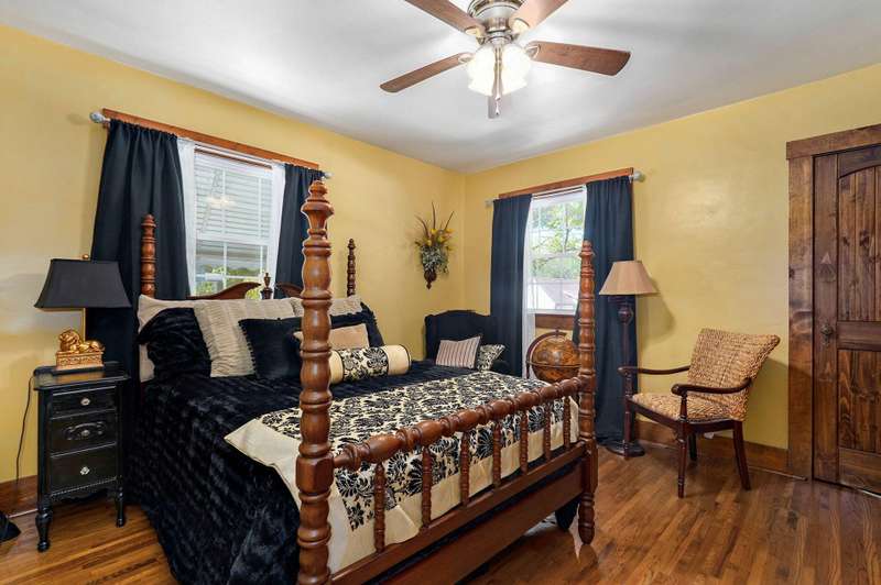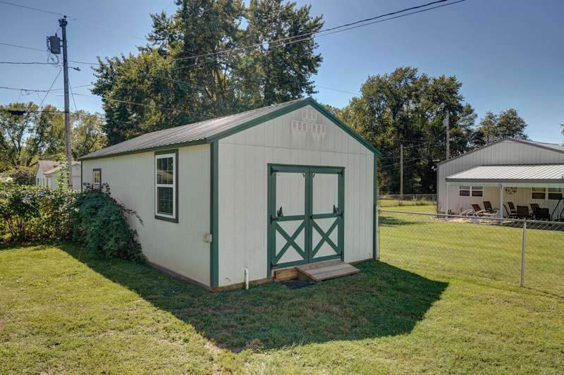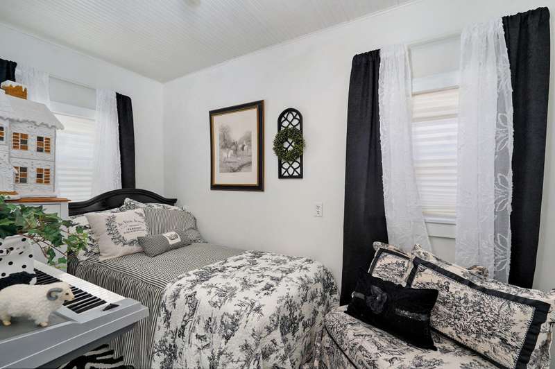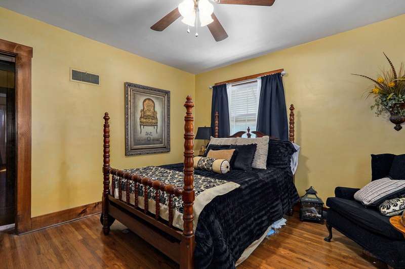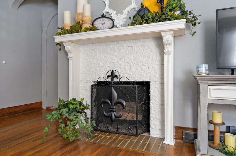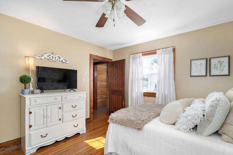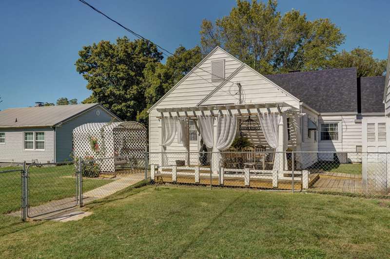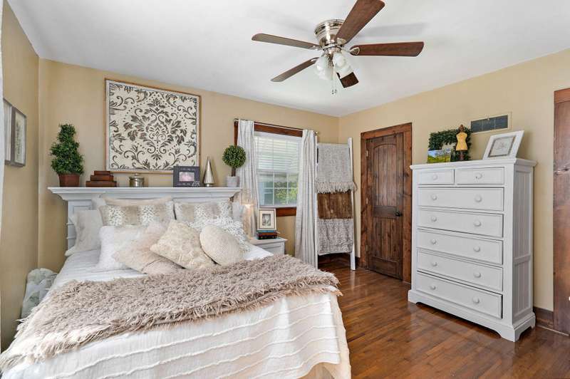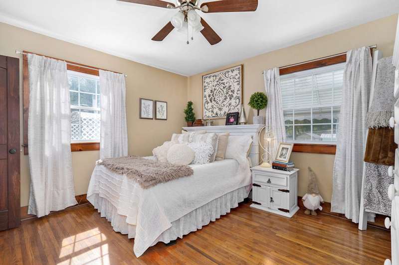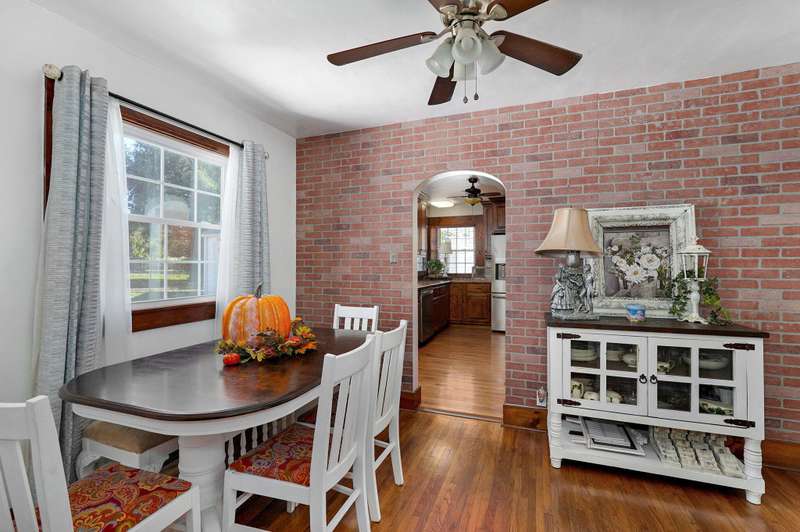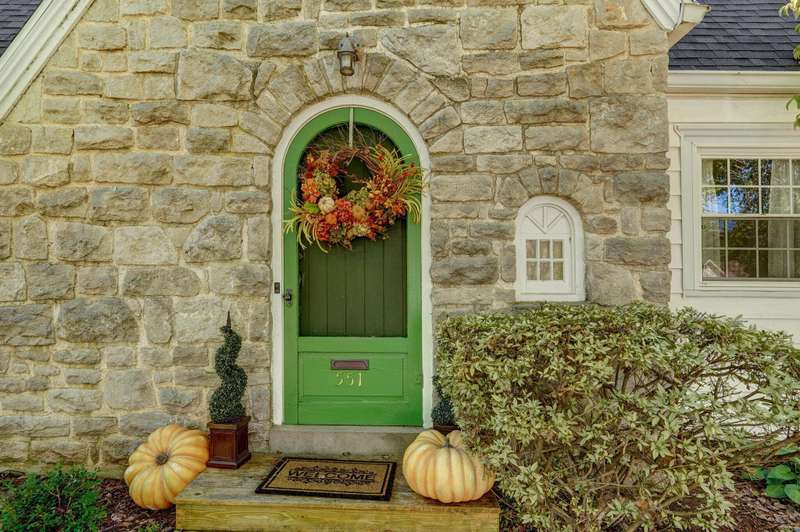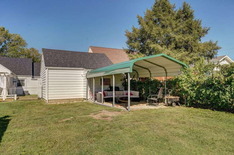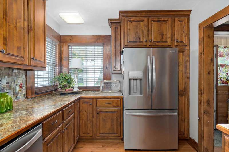 Fall in love with the amazing architectural details of this charming 1945 English-style bungalow. The stunning exterior showcases beautiful stonework, a peaked roofline with a unique ''catslide roof,'' and an original arched wooden entry door. Inside, the charm continues with original hardwood flooring and elegant arched doorways. The home's practical floor plan offers a great living space, including a large living room with a wood-burning fireplace and a great, light-filled kitchen. The kitchen and bath have been meticulously remodeled, and newer windows have been installed. The property is completed by a large, landscaped yard, a 2-car detached garage, a carport, and an oversized garage/workshop.