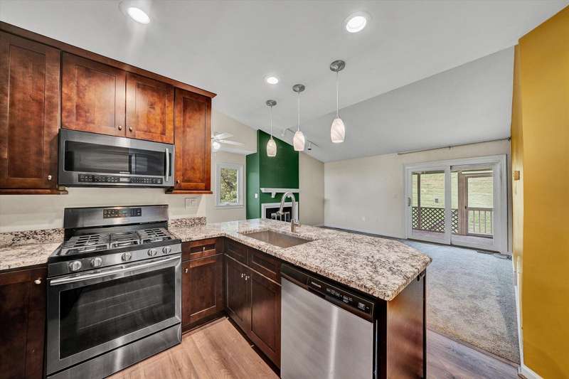 Stylish, move-in ready condo in North Roanoke County! Enjoy a modern granite kitchen with stainless appliances, open living room with gas fireplace, and one of the only screened decks ready for you to relax! With 3 private bedroom suites - including a flexible lower level Rec/bedroom plus a 2 car garage, and community pool within walking distance. This home has it all!