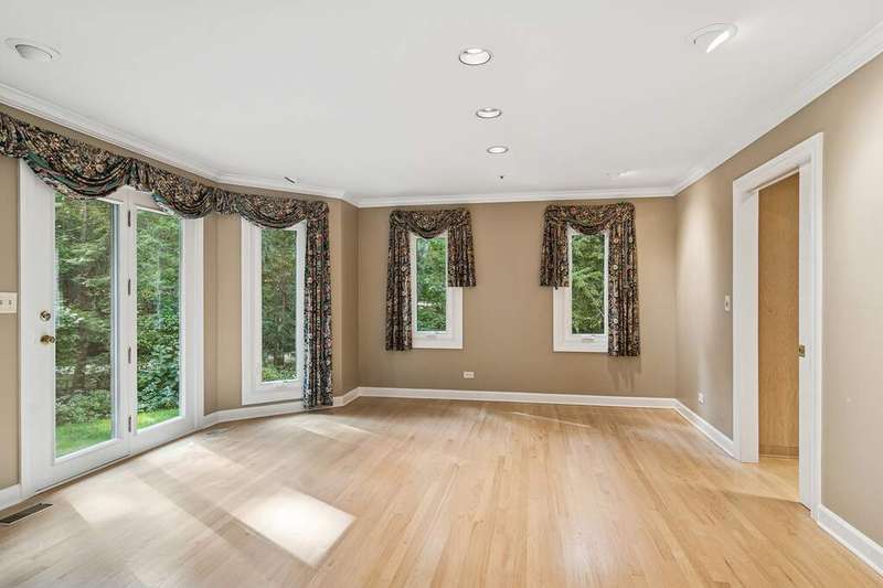Welcome to 4613 Forest Way Circle-one of the most spacious homes on one of the largest, most private lots in the maintenance-free Fields of Long Grove. Perfectly positioned on a quiet private drive at the end of a cul-de-sac, this beautifully crafted home offers soaring ceilings, thoughtful updates, and an oversized first-floor primary suite. The open floor plan is ideal for both entertaining and everyday living. Lush gardens surround the home, complemented by a screened porch and expansive wooden deck for year-round enjoyment. Oversized windows, glass French doors, and skylights fill the home with natural light. A gourmet kitchen, three additional bedroom suites, hardwood floors, and a finished basement are only a few of the features of this inviting and serene retreat. Experience the joy and convenience of maintenance free living, less than a mile from the heart of Historic Downtown Long Grove. Welcome Home!