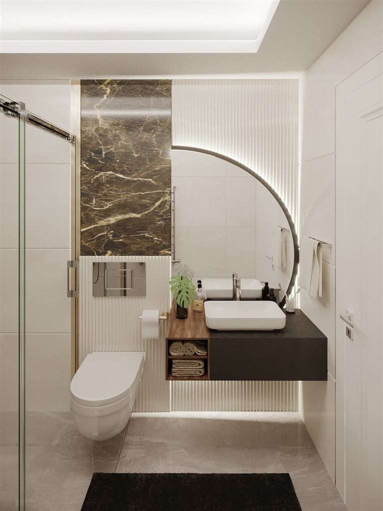 Contemporary apartments will be delivered with satellite TV, floor coverings, wall paints, electrical and water installations, windows, interior and exterior doors, bathroom and kitchen cabinets, and bathroom and kitchen countertops.