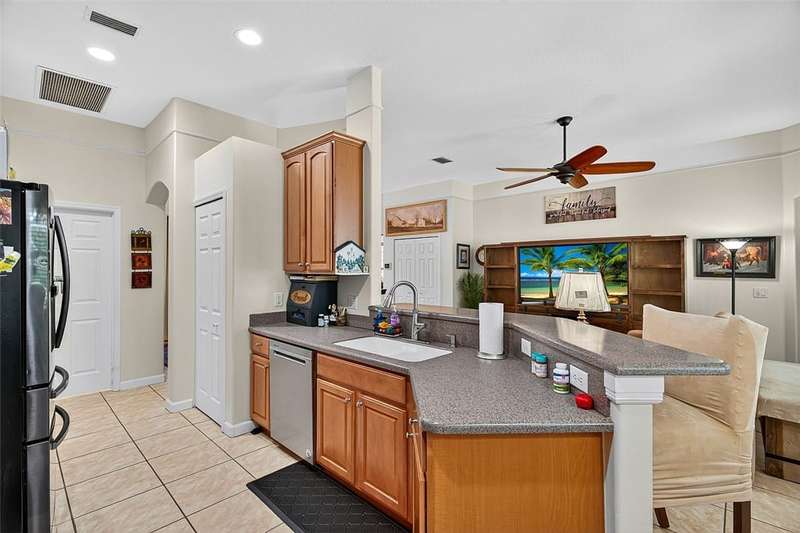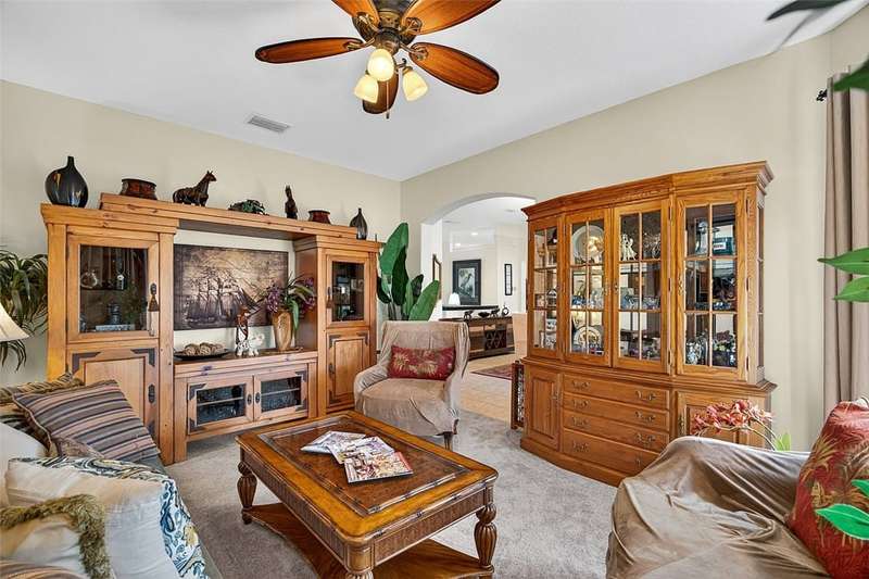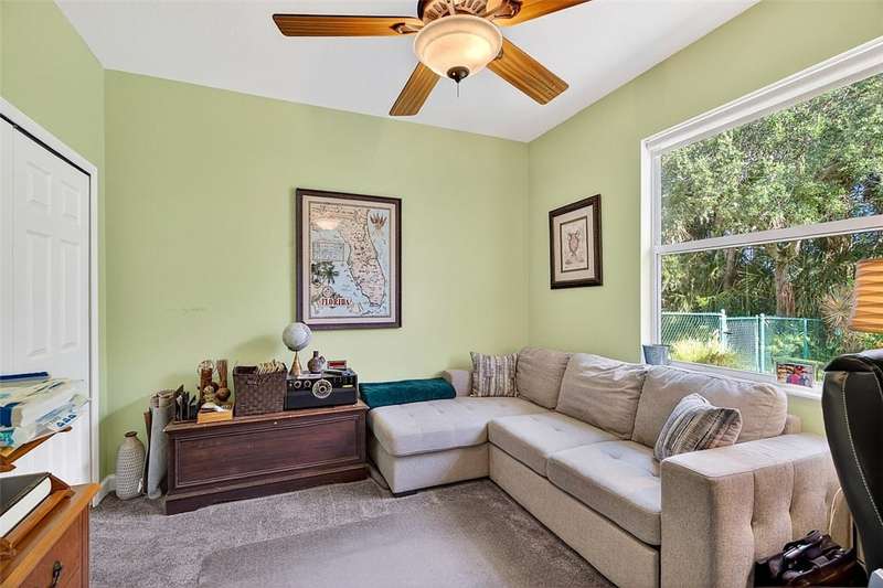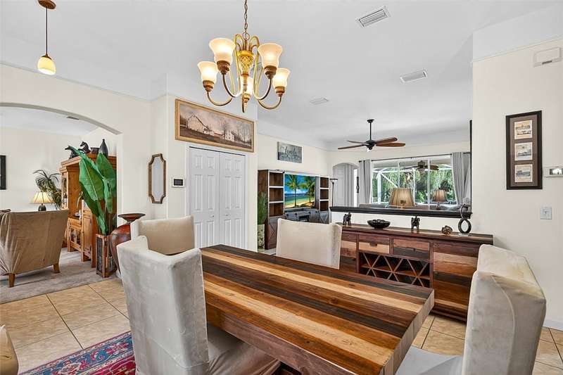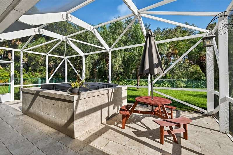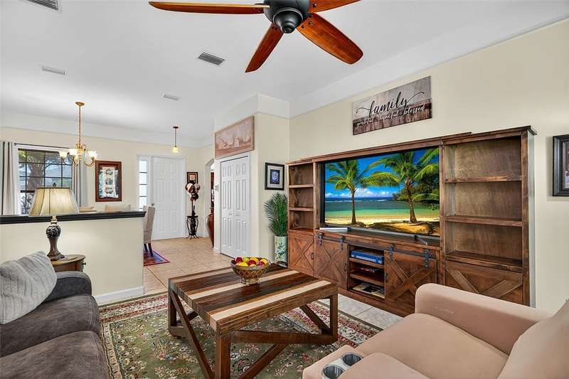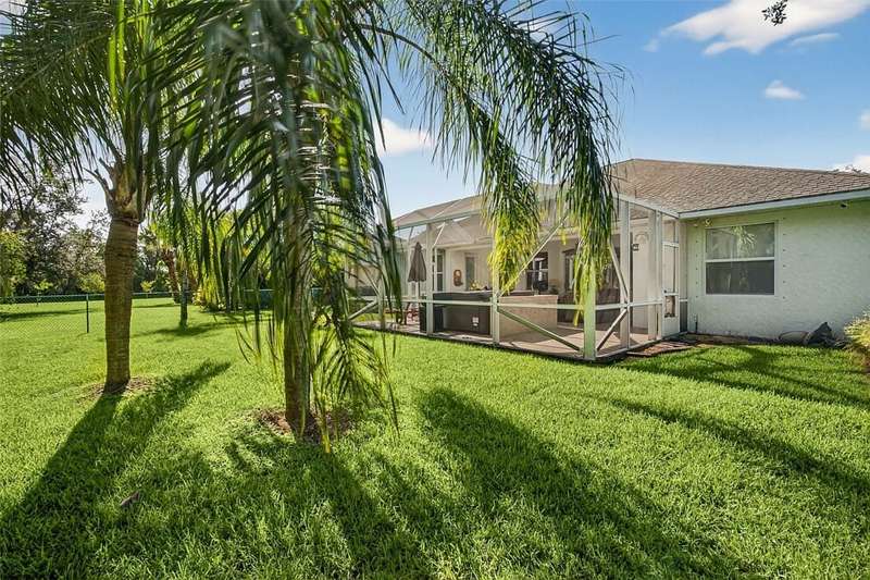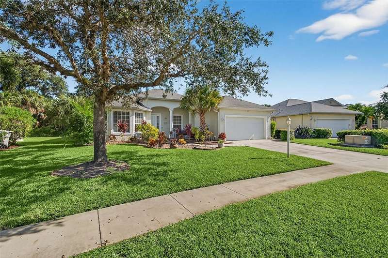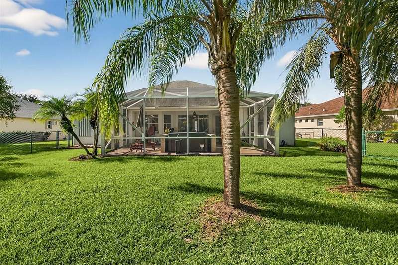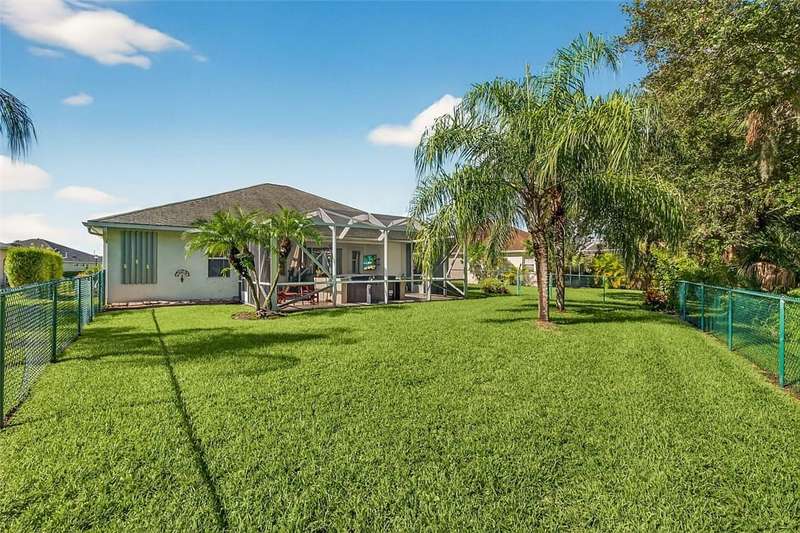 Welcome to Hammock Lakes! This 3-bed, 2-bath home is located in one of Vero's communities with natural gas! Inside boasts high, volume ceilings, and an open and split floor plan with multiple living and dining areas. Tile in the living areas and carpet in the bedrooms and formal living room. A spacious laundry room with extra cabinets and a utility sink. The screened back patio has a built-in jacuzzi and all located on a spacious 0.33-acre fenced lot. Hurricane-ready with a whole-home generator. 2016 A/C. The community offers a pool, basketball, tennis, and pickleball. Room sizes approximate.