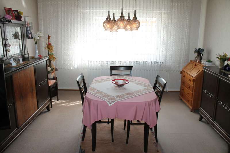 This modernized semi-detached house with 2 residential units and granny annexe is centrally located in Obertshausen. A total of approx. 240m² of living space is available for 2 residential units plus granny annexe. The apartment on the first floor consists of a living room, kitchen with dining area, 2 bedrooms, bathroom with bathtub and shower, terrace with access to the outside area. The apartment on the 1st floor also offers 2 bedrooms, a daylight bathroom with bath and shower, living and dining area, kitchen with access to the balcony. In the basement there is also a granny unit consisting of a living room and bedroom plus shower room. In the basement there is also a private utility area, cellar compartment, storage room, office and utility room. A freezer room is located outside. The outdoor area also offers a garden and parking facilities in the associated garage with outdoor parking space. The offer is particularly attractive for residential models such as generational living, working and living under one roof, as well as an investment property.