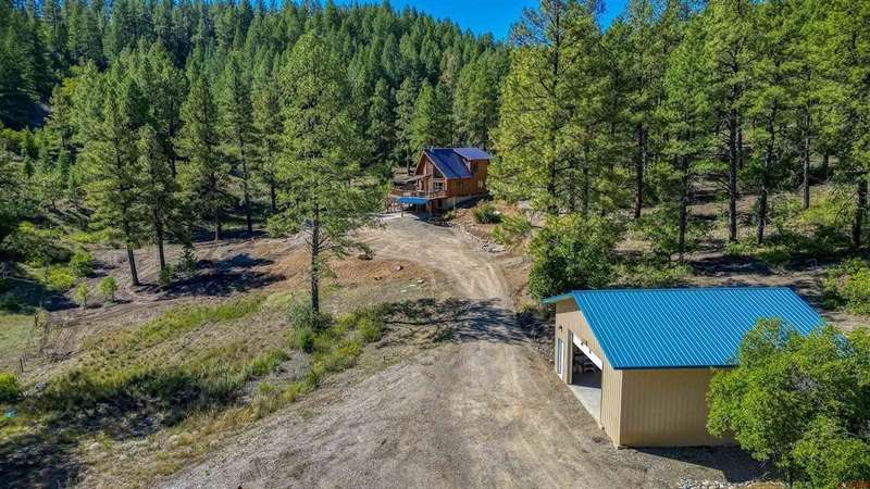 Juli Morelock, Galles Properties, C: 970-946-2137, juli@gallesproperties.com, https://julimorelock.com: Colorado Log Cabin! 2,292 sq.ft. log home on nearly 5 fully fenced acres with tall ponderosa pines and stunning views of Square Top Mountain and the Eastern Range of the San Juan Mountains. This 3 bedroom, 3 bath home features vaulted ceilings, gas log stove in the living room, hardwood floors, natural wood finishes, large windows for abundant light, and a warm, inviting interior.The primary suite includes a gas log fireplace, private porch, and walk-in closet, primary bath features a corner soaking tub, separate vanities and walk-in tiled shower. Additional extras include redwood decks, newer appliances, air conditioning, fire sprinklers, and an upgraded well and filtration system.Property highlights: 30x30 shop with electricity, extensive natural rock landscaping, and outdoor living spaces perfect for relaxing or entertaining.Conveniently located just 10 minutes from Pagosa Springs with year-round access. A private mountain retreat with comfort, views, and modern upgrades.