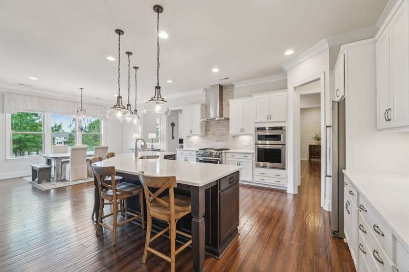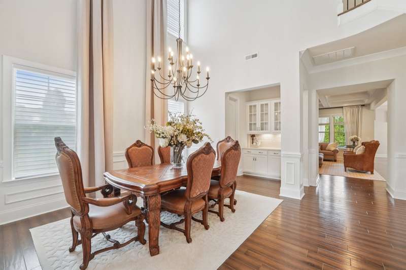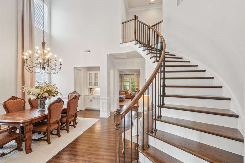 Experience refined living in one of Union County's prestigious gated communities, ideally located within the top-rated Marvin school district. This beautiful residence offers a perfect blend of elegance, comfort, and everyday functionality, designed for entertaining and effortless daily life. An inviting foyer with wainscoting and an elegant curved staircase welcomes you inside, while french doors open to a private home office/study. Architectural details are showcased throughout, from detailed moldings to the graceful flow of open living spaces. The dramatic two-story dining room is idea for hosting gatherings, featuring a butler's pantry and a large storage closet that could easily convert to custom wine storage. The spacious great room highlights a stunning stone fireplace, coffered ceiling, and seamless connection to the gourmet kitchen. Designed for the inspired home chef, the kitchen boasts a center island, abundant cabinetry, gas cook top, 2 electric stoves, microwave, walk-in pantry. Generous breakfast area has French door leading to a covered terrace and paver patio, perfect for outdoor dining and relaxation.A convenient office/computer station, private powder room, and thoughtfully designed laundry room with built-in cabinetry and board and batten trim enhance the home's function and charm. The drop zone offers practical storage with a shiplap wall, cubbies, and hooks for coats, shoes, and bags, plus an oversized storage closet. A guest suite on the main level provides privacy and comfort and ensuite bath. Pre-finished hardwood floors grace the main living areas, with tile in the laundry and baths, and carpet in the guest suite. Upstairs, the primary suite is a true retreat featuring a spacious sitting room-perfect for a private escape, nursery, or second office. The elegant ensuite bath includes two vanities, a soaking tub, an oversized shower, and two large walk-in closets. The upper level also offers a cozy loft with shiplap accent wall and hardwood floors, plus three additional bedrooms-each with bathroom access, carpet flooring and generous walk-in closets. Enjoy outdoor living int he private, fenced backyard surrounded by lush landscaping. Whether hosting friends, relaxing on the covered terrace, or dining al fresco under the stars, this backyard is your own personal haven. Additional highlights include abundant storage throughout, a secondary staircase offering convenient back access, and timeless craftsmanship in every detail. This exceptional home captures the best Union County living-an elegant, comfortable, and thoughtfully designed retreat in a secure gated community, just minutes from shopping, dining and the award winning Marvin schools.Refrigerator in kitchen conveys. Refrigerators in laundry room and garage do not convey.