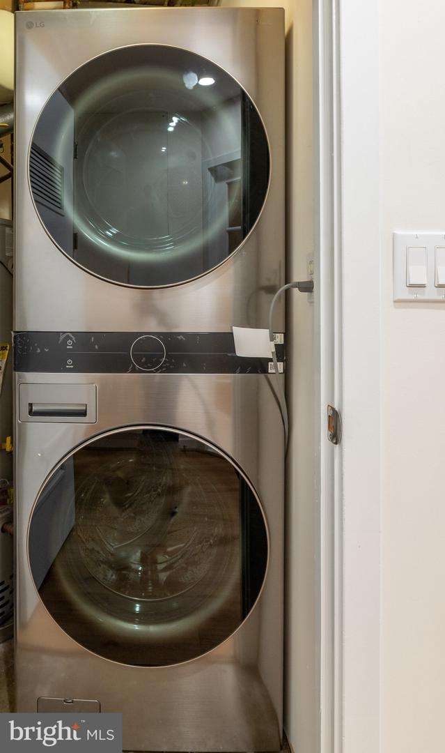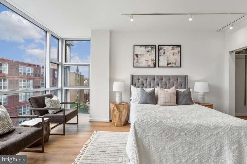 This stunning, sunlit corner condo (w/2-car garage parking/adjoining storage) sits in the heart of Washington, DC. Its location in Logan Circle is close to the 14th Street corridor of fine dining and boutique shopping and walkable to the Mt Vernon/Convention Centre Metro. This unit has just been updated with new flooring, a fresh coat of paint and new appliances.Inside, an open-concept living, dining, and kitchen is anchored by a gas fireplace, custom built-in shelving, and floor-to-ceiling windows that flood the space with natural light. Two covered balconies provide the perfect spot to unwind outdoors and enjoy the panoramic views.The home offers two spacious bedrooms, each with its own designated walk-in closet, plus additional storage in a convenient hall closet. The primary bedroom and second bedroom both feature dramatic floor-to-ceiling windows and en-suite bathrooms. The flex space can be used as an office, media room, and possible third bedroom. For added convenience, the unit includes a new in-home LG washer and dryer, two tandem garage parking spaces, and two adjoining private storage units.The Solo Piazza Condominiums offer a full suite of amenities such as concierge, security system, bamboo courtyard, rooftop deck with panoramic views.