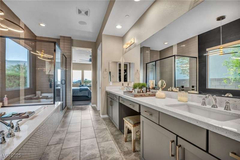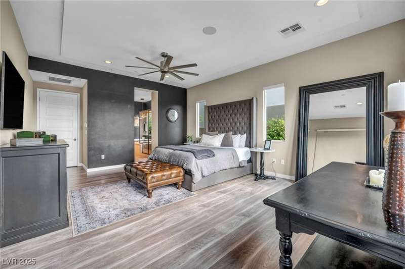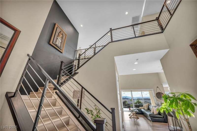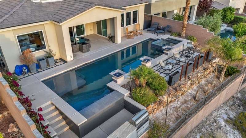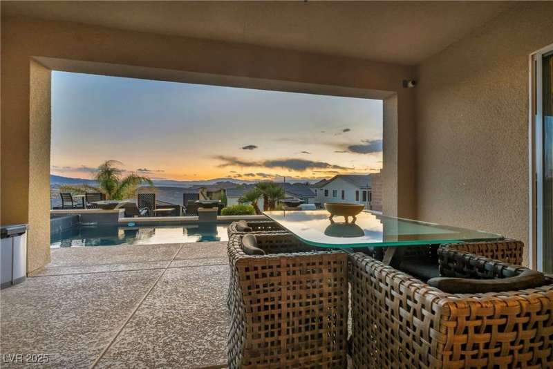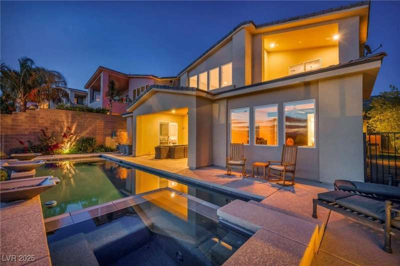 Experience elevated living in this elegant 3,218 sq ft two-story estate in the prestigious Peaks community at Lake Las Vegas. This home blends modern luxury with everyday comfort, featuring an open-concept layout with Sonos surround sound, a chef's kitchen with double ovens, ice maker & oversized waterfall island, plus a stylish dry bar and dual-zone wine fridge. The resort-style backyard showcases a sparkling pool with swim-up bar, lounging wet deck, and built-in BBQ. Upstairs, enjoy two balconies?one with a live-edge bar capturing Strip & sunset views, and another overlooking serene mountains. The first-floor includes a primary suite and ensuite guest room, with convenient laundry. Located in an award-winning master-planned community offering 320-acre private lake, water sports, fine dining, championship golf & year-round events. Exceptional condition, best price per sq ft, and unmatched views make this a must-see.