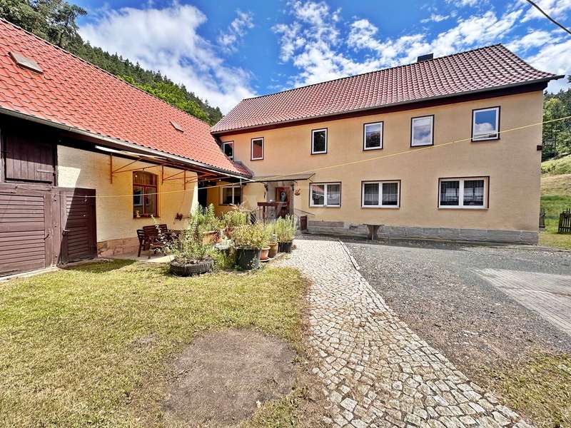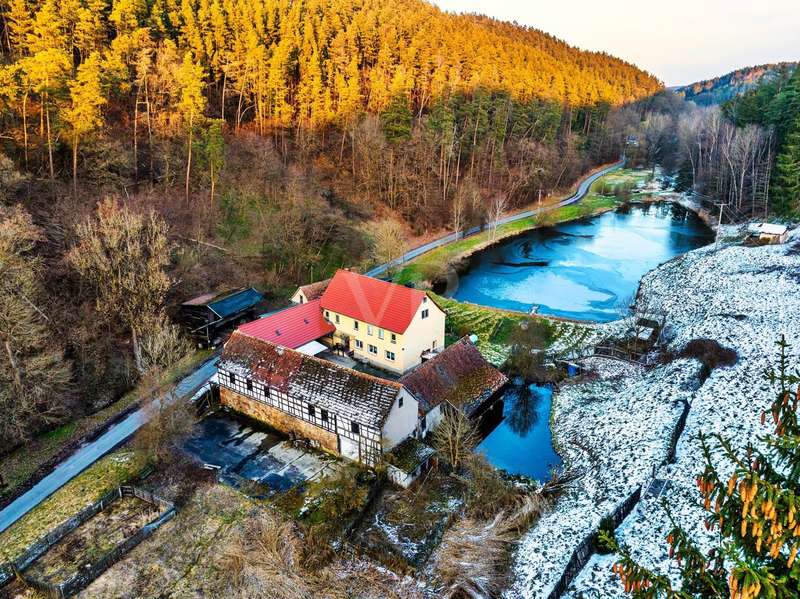 The historically significant Trompeter Mühle in Lindig, nestled in the idyllic landscape of the Leubengrund, is for sale. The total area of the property is 160,000 m² and offers a combination of residential buildings, outbuildings, historic sawmill with water wheel and existing water rights. Meadows and wooded areas, which are home to a rich stock of deciduous and coniferous trees, border the residential property to the right and left. A special feature and the heart of the property is the pond with a surface area of 6,000 m² for fish farming or water sports activities. The historic residential building was built before 1720 and offers approx. 273 m² of living space. The house extends over 2 floors and is designed in such a way that it can be used by several 3 generations and offers everyone a separate living area. Next to the house are the outbuildings, barn, stable, garages with hayloft, outdoor parking spaces and party room. Plenty of space for you in individual and versatile use, e.g. as a workshop, studio or also in typical use. The property includes a historic sawmill, a reminder of the mill's busy past. Ideal for lovers of historical technology or for conversion into a museum or creative workshop. Another special feature is the over 100-year-old water wheel, which is not only a historical element but can still be operated today. History of the Trompeter Mill The Trompeter Mill looks back on a long and eventful history. Originally built in the 18th century, it was an important part of the local economy for many decades. With its historic sawmill, it is a witness to times gone by. The name Trompetermühle (trumpet mill) goes back to a legend according to which a trumpeter once lived here, who enchanted the surrounding area with his playing and even saved a count. Lindig is located in Thuringia - in the green heart of Germany - and offers a perfect blend of rural tranquillity and good connections to the cities of Jena and Weimar. The surrounding area is ideal for nature lovers, hikers and anyone who wants to escape the hustle and bustle of the city. The Trompeter Mühle is not just a property, but a piece of living history. With its extensive grounds, charming house and versatile outbuildings, it offers new owners countless opportunities to make their dreams come true. Whether as a private retreat, a farm or a historical gem, Trompeter Mühle is a unique offer. Please do not hesitate to contact us for further information or to arrange a viewing. Realize your dream of your historic mill in the heart of Thuringia. The energy certificate was not available when the advertisement was created.