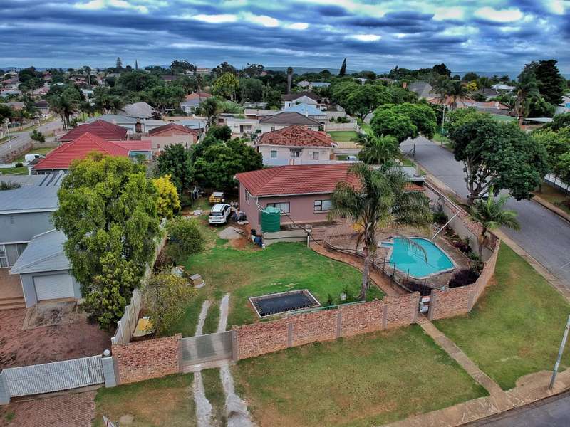 Lovely family home located within close proximity of schools, shops and The Uitenhage Golf Course.Theproperty is situated behind a tall face-brick and partially plastered fence with three gates, and is located on a large corner plot which can be accessed from both streets. One large access gate on the property leads into a spacious enclosed double carport. There is ample yard space to enjoy, along with a swimming pool surrounded by paved bricks next to a well manicured lawn. This home also features a lovely outdoor entertainment set-up that includes a built-in braai.For the extended family or for renting out purposes, there is an outbuilding that can be converted into a flatlet. Upon entering this lovely home, you are welcomed by a large open plan living and dining area located next to the kitchen. All four bedrooms have built-in cupboards and ceiling fans. The master bedroom offers an en-suite bathroom.A trampoline and two Jojo tanks are inclusive in the sale of the property. The home also features an alarm system for added security. Extra features: Oregon pine floor in living area and two bedrooms. Plastered ceilings. 5000L water storage. Contact me to arrange an appointment to view.