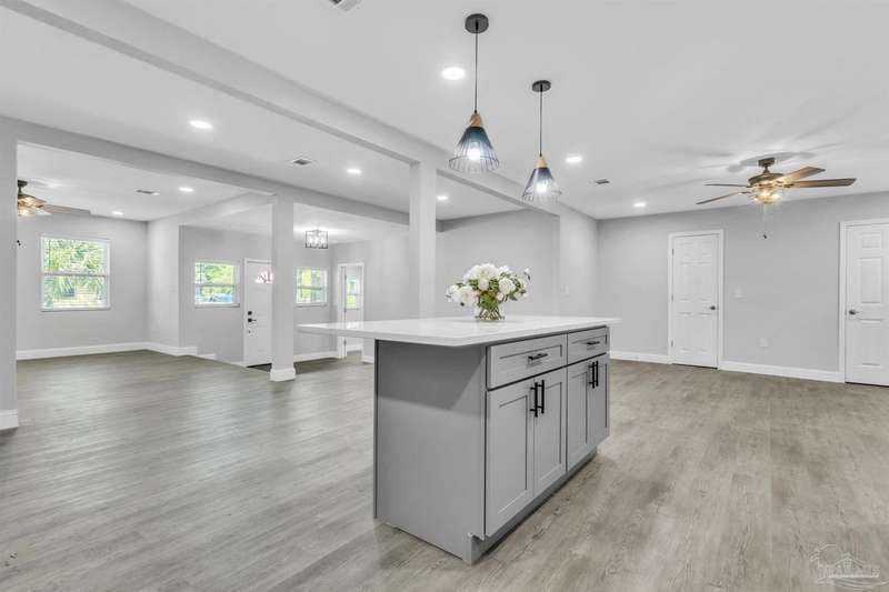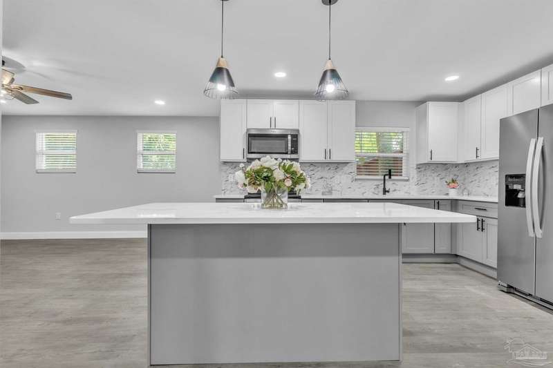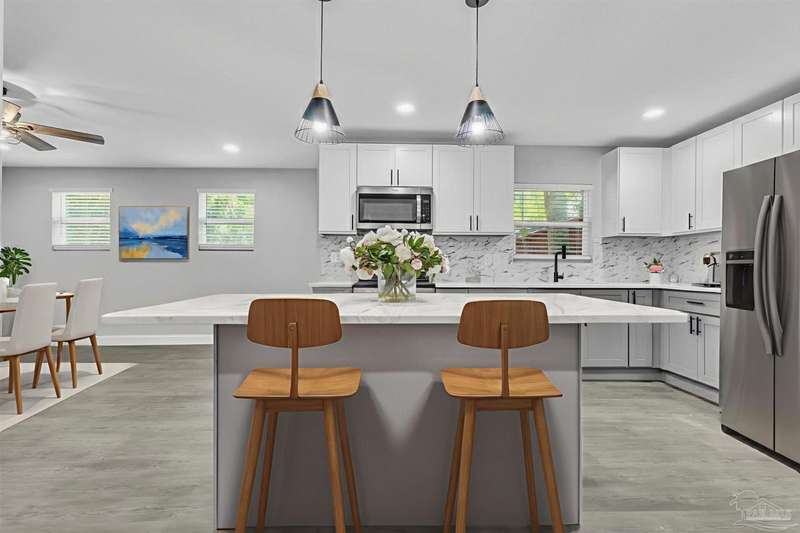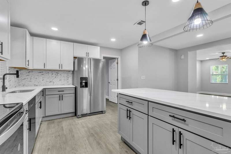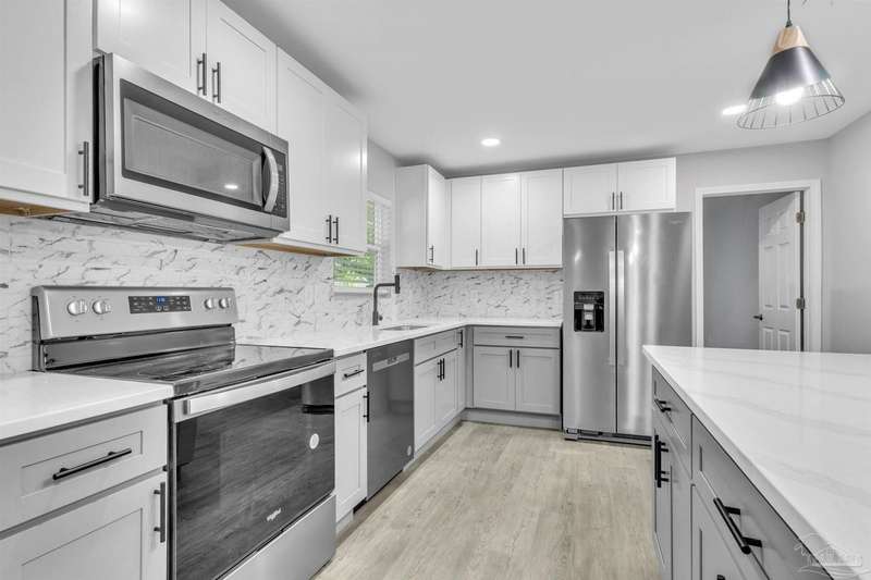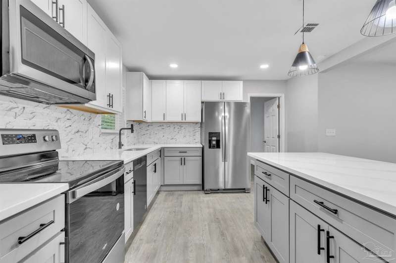 Stunning 4-Bedroom Coastal Retreat with Pool & Modern Upgrades! Only less than 2 minutes from the Pensacola marina and boat launch, Wow!!! Welcome to your dream home! This fully remodeled 4-bedroom, 2-bath gem is perfectly situated just minutes from the beach, downtown, top dining spots, entertainment, and more - all while tucked away in a peaceful and private setting. Step inside and be wowed by the brand-new luxury vinyl plank flooring that flows seamlessly throughout the home. The bright and modern kitchen features sleek granite countertops, stylish fixtures, and upgraded lighting that complements the fresh, contemporary design. The smart split-bedroom floor plan offers privacy and comfort, with the spacious primary suite tucked away from the guest bedrooms. The en-suite bathroom is a luxurious escape, boasting a beautifully tiled walk-in shower. Efficiency meets peace of mind with a new roof, energy-efficient natural gas heating, and a gas water heater. Outside, your personal backyard oasis awaits - complete with a sparkling in-ground gunite pool, a full covered patio with a dry bar, and a large garage/workshop for all your storage or hobby needs. Whether you're hosting friends or enjoying a quiet evening under the stars, this home offers the perfect blend of indoor comfort and outdoor enjoyment. Don't miss your chance to own this incredible property - schedule your private showing today!