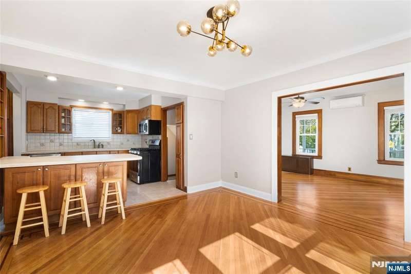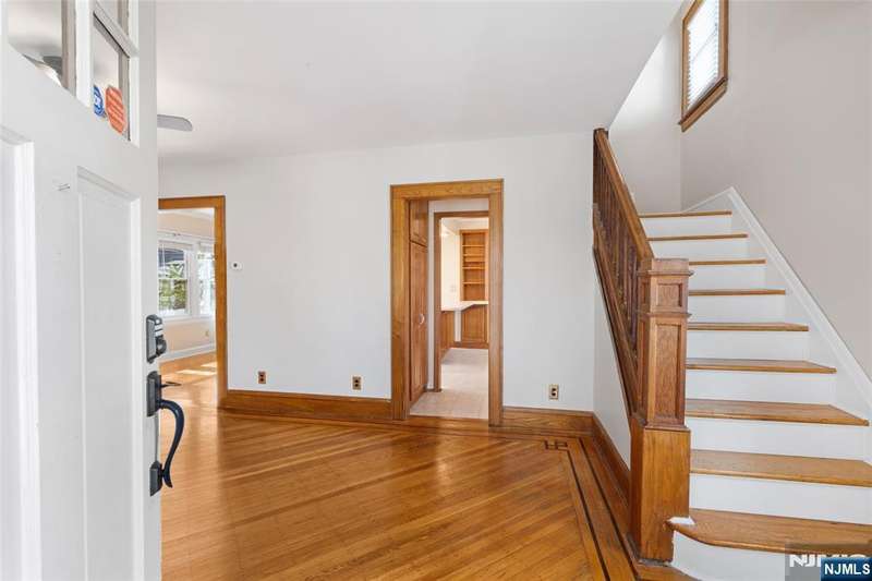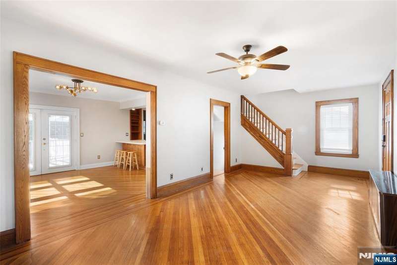 Welcome to this charming colonial that perfectly blends timeless character with modern updates. From the moment you arrive, you'll be greeted by the inviting front porch (newly done in 2024), the perfect spot to relax and unwind. Ideally located in a desirable Nutley neighborhood, this home offers easy access to dining, shopping, schools, and commuter routes. Inside, natural wood details and trim add warmth throughout, complemented by abundant natural light. The main level features a spacious living room with a beautiful brick wood-burning fireplace, a formal dining room with sliders leading to a nicely sized backyard and large deck, a powder room, and a bright, roomy kitchen with brand-new appliances (2024). Upstairs, you'll find three comfortable bedrooms, a full bath, and a walk-up attic accessible from one of the bedrooms ideal for storage or potential future expansion. The unfinished basement offers even more potential or can serve as excellent storage as-is. Additional highlights include a new furnace (2023), fresh paint (2025), and a driveway with ample parking. With its perfect combination of old-world charm and modern upgrades, this home truly is "Home Sweet Home".