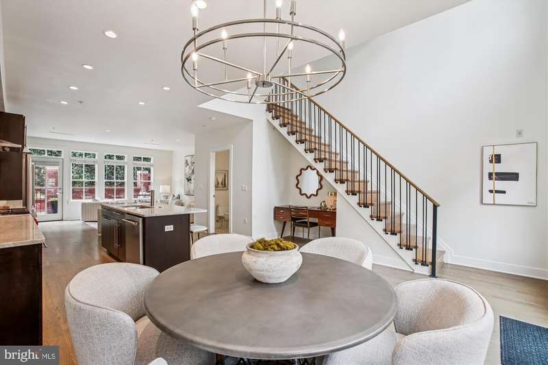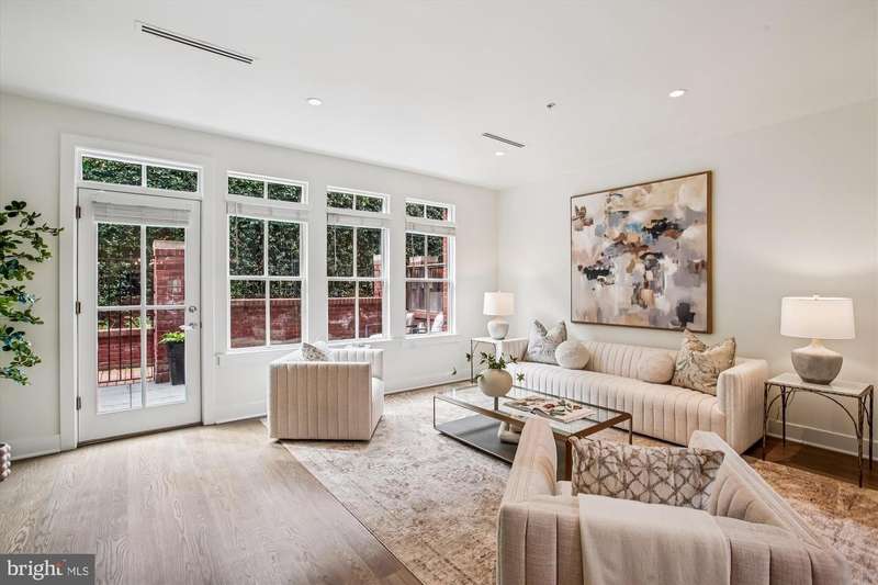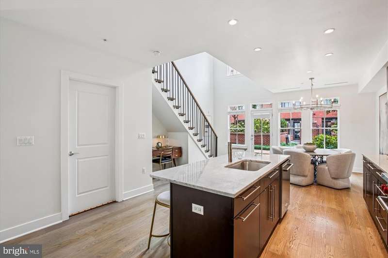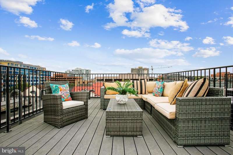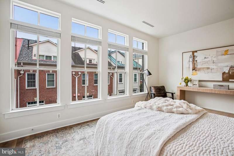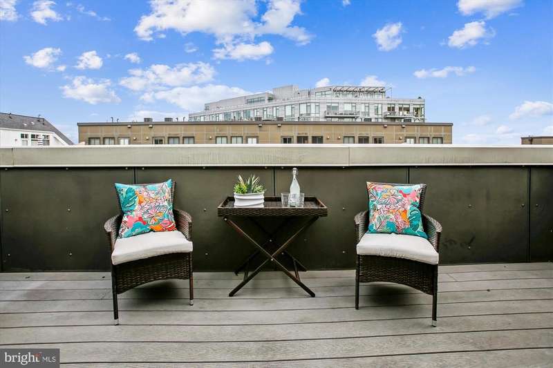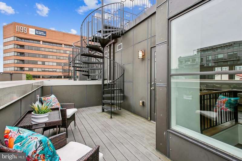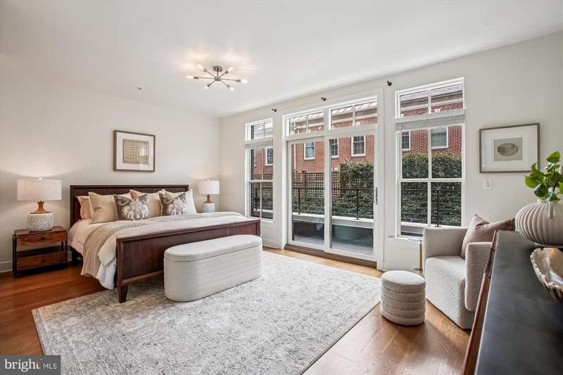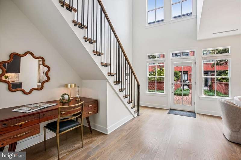 Tucked away in the highly sought-after and exclusive Printer's Row community, this rare residence is one of only five fully gated homes, offering an unparalleled combination of privacy, security, and Old Town charm. The expansive main level welcomes you with a bright, open floor plan, soaring windows that flood the space with natural light, and seamless flow from the living and dining areas to a private rear patio-ideal for both everyday living and entertaining. The chef's kitchen is a true centerpiece, featuring high-end appliances, ample cabinetry, and a thoughtful layout, while a convenient half bath completes the main level. The private owner's suite spans the entire second level and feels like a true retreat, boasting a spa-inspired bath with a soaking tub, oversized glass shower, double vanity, and generous closet space. A rear balcony extends the suite outdoors, providing the perfect spot to enjoy a morning coffee or evening unwind. On the third level, two spacious guest bedrooms with brand new LVP flooring share a full bath, and the conveniently located laundry room adds ease to daily living. The upper-level loft offers versatility for a home office, media room, or gym and connects to a large terrace. From there, a dramatic spiral staircase leads to the crown jewel of the home-an expansive rooftop deck with river views, ideal for gatherings, sunsets, and city lights. To top it off, this residence includes two reserved underground parking spaces, offering rare convenience and security in Old Town. Ideally located in Old Town North, the home is just steps from the scenic Mount Vernon Trail and a short stroll to some of Alexandria's best restaurants, cafes, and bars. With easy access to Washington National Airport, Metro, and downtown D.C., this home delivers the perfect blend of luxury, convenience, and Old Town lifestyle.
