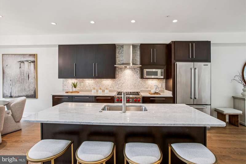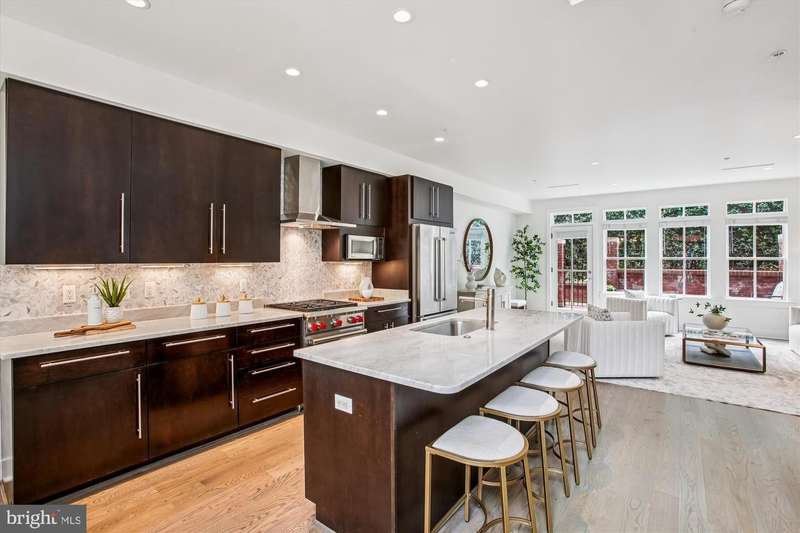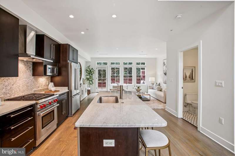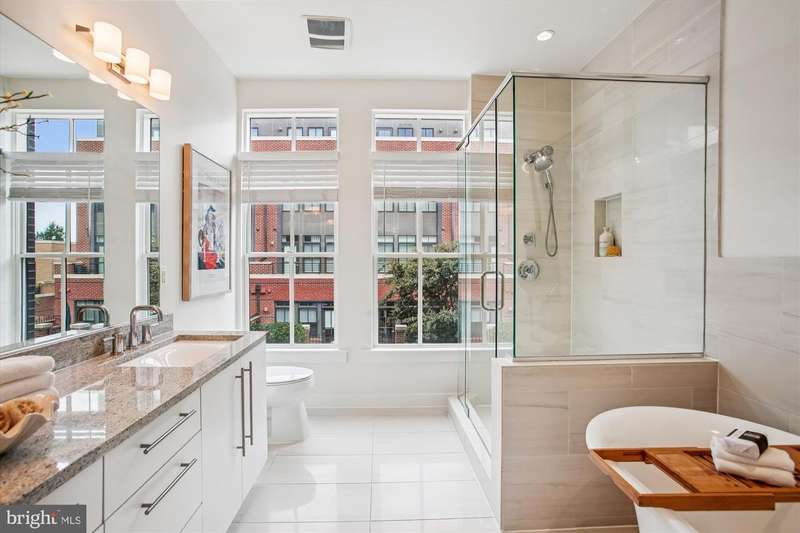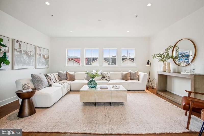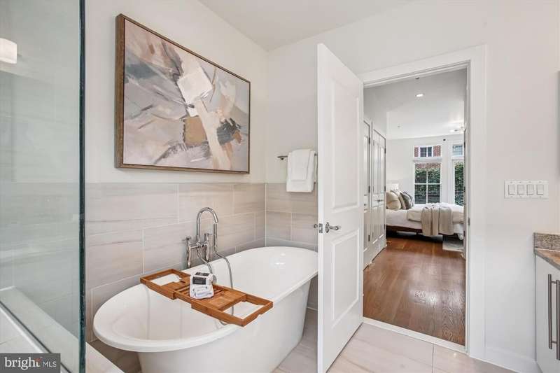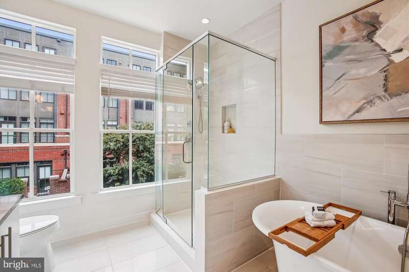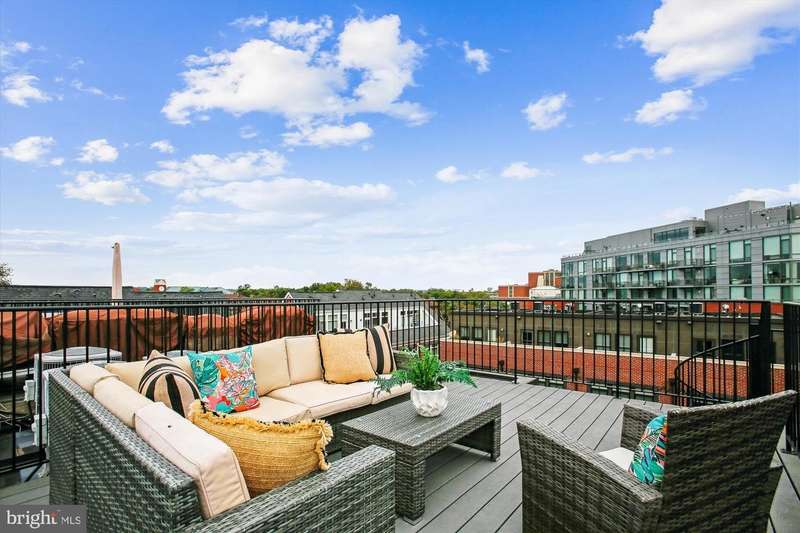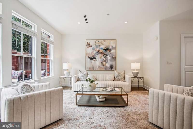 Tucked away in the highly sought-after and exclusive Printer's Row community, this rare residence is one of only five fully gated homes, offering an unparalleled combination of privacy, security, and Old Town charm. The expansive main level welcomes you with a bright, open floor plan, soaring windows that flood the space with natural light, and seamless flow from the living and dining areas to a private rear patio-ideal for both everyday living and entertaining. The chef's kitchen is a true centerpiece, featuring high-end appliances, ample cabinetry, and a thoughtful layout, while a convenient half bath completes the main level. The private owner's suite spans the entire second level and feels like a true retreat, boasting a spa-inspired bath with a soaking tub, oversized glass shower, double vanity, and generous closet space. A rear balcony extends the suite outdoors, providing the perfect spot to enjoy a morning coffee or evening unwind. On the third level, two spacious guest bedrooms with brand new LVP flooring share a full bath, and the conveniently located laundry room adds ease to daily living. The upper-level loft offers versatility for a home office, media room, or gym and connects to a large terrace. From there, a dramatic spiral staircase leads to the crown jewel of the home-an expansive rooftop deck with river views, ideal for gatherings, sunsets, and city lights. To top it off, this residence includes two reserved underground parking spaces, offering rare convenience and security in Old Town. Ideally located in Old Town North, the home is just steps from the scenic Mount Vernon Trail and a short stroll to some of Alexandria's best restaurants, cafes, and bars. With easy access to Washington National Airport, Metro, and downtown D.C., this home delivers the perfect blend of luxury, convenience, and Old Town lifestyle.