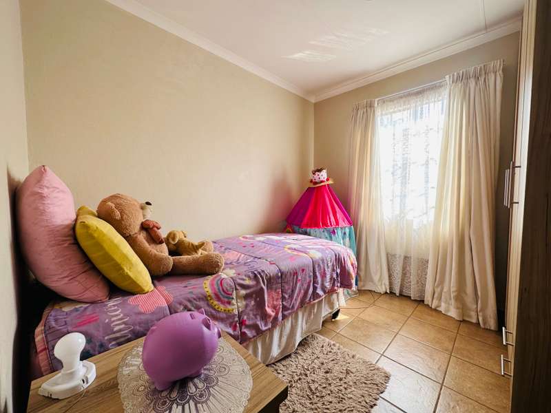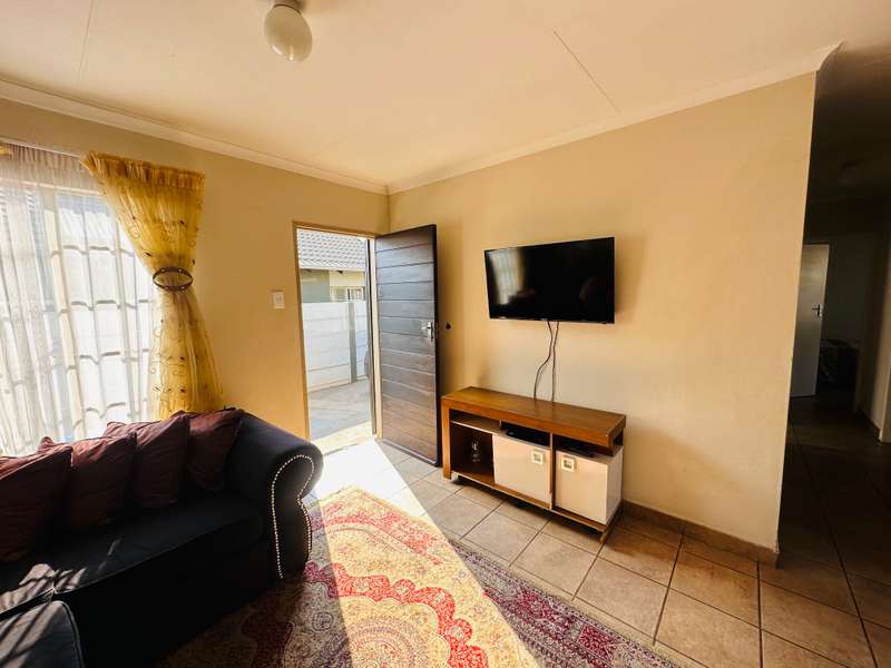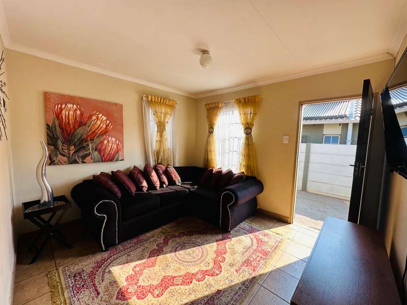 Exclusive and New to the Market- This stunning home in the heart of Sky City consists of: - 3 tiled bedrooms with built in cupboards and 2 bedside tables - 1 bathroom with a bath and basin - A separate toilet - A modern kitchen with a hob, built in oven and extractor - A tiled lounge area - A paved driveway - A beautifully manicured garden with garden furniture included - Fibre ready - Prepaid electricity Well secured and close to all amenities and easy access to all main roads as well...
