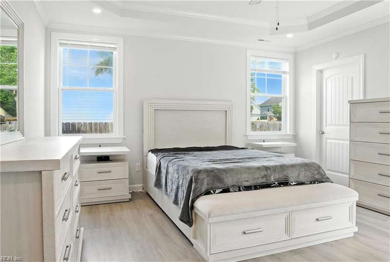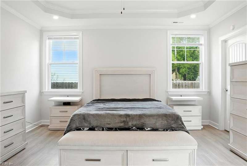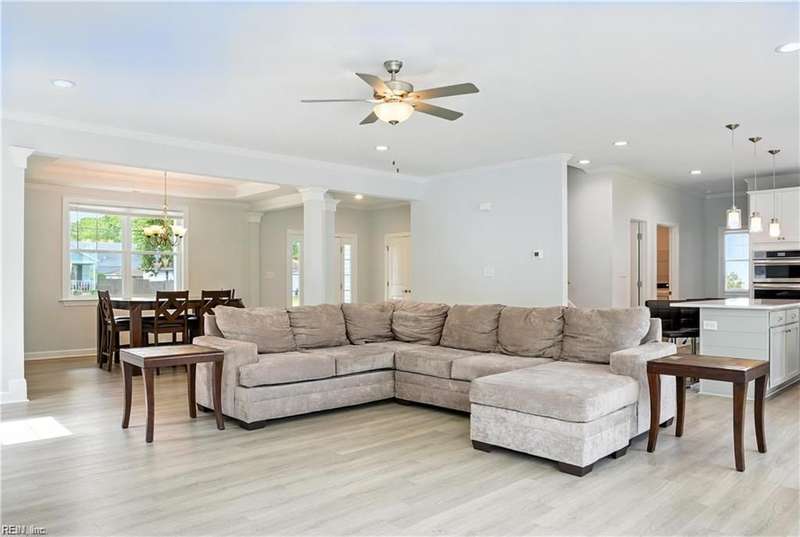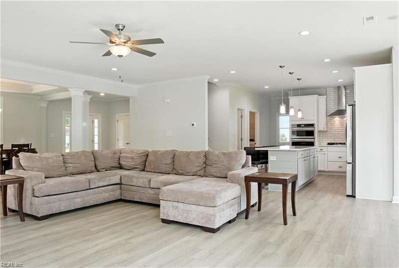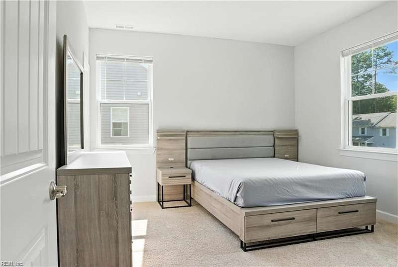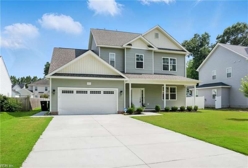 Step into style and space with this beautifully crafted 6-bedroom (7 with an easy upgrade), 3.5-bath gem in the heart of Grassfield. Built in 2023, this 3,236 sq ft smart home is serving open-concept luxury with sun-kissed natural light, energy-efficient systems, and bold, beautiful vibes throughout. The kitchen features a smart Samsung fridge, gas stove, convection microwave, and under-cabinet glow. First-floor bedroom? Perfect for the family or guests. Tech upgrades include smart plugs, cameras, and tankless water heater. The primary suite? Your sanctuary?with private access to a concrete patio made for entertaining, relaxing, or that dream hot tub. No HOA, highly sought after Grassfield High District, and close interstates, bases, and shopping. This is more than a house?this is your next chapter.