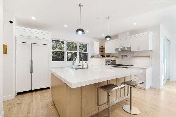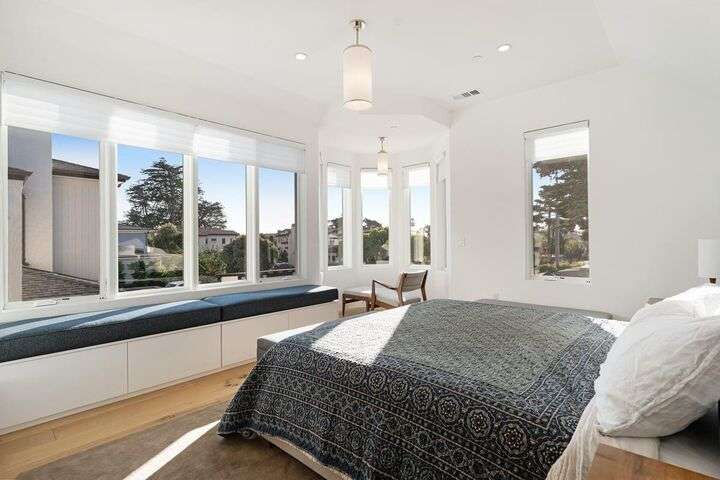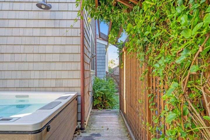 Welcome to Pleasure Point Roadhouse Residences-an exclusive enclave of eight luxury oceanfront homes commanding a premier stretch of iconic East Cliff Dr. Just three years new, this stunning Cape Cod inspired residence showcases timeless coastal architecture with its wood-shake exterior and sunlit, open living spaces designed for entertaining. Each bedroom features an en-suite bathroom. The spectacular chef's kitchen features premium appliances, a large island with prep sink, gorgeous counters and backsplash. Beautiful hardwood floors and a cozy fireplace add warmth & charm. Upstairs, the primary suite is a true retreat- a turret of windows captures some of the best ocean views in the home. With The Hook surf spot just across the street, you can enjoy a morning surf session, rinse off in your outdoor shower, soak in the hot tub, and unwind in your private backyard sanctuary surrounded by lush landscaping, a custom arbor, and mature vines. Enjoy effortless coastal living with nearby Pleasure Point shops, cafes, and easy bike access to Capitola Village and the Santa Cruz Beach Boardwalk. Solar system (off-grid capable), whole house water filtration system, Custom built-in bookcases, storage cabinets & designer shoe closet! Designer Moooi Heracleum chandelier