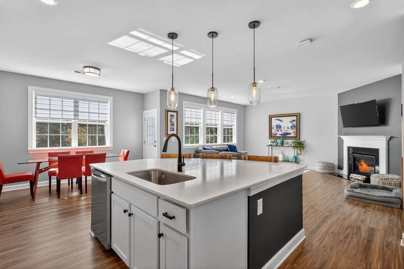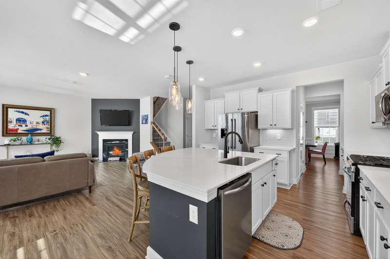 Welcome to Davidson East! This stunning home sits on a premium serene wooded lot and features a beautifully designed, lighted paver patio with a cabana - perfect for entertaining. Right near the greenway trail and located in a top-rated school district, this home offers the ideal blend of comfort, convenience, and community. The inviting covered front porch ushers you inside where you'll find luxury vinyl plank flooring throughout the main level, a cozy gas fireplace, and an open-concept kitchen equipped with a gas stove, quartz countertops, large island, and under-cabinet lighting. Formal dining area flows through your butler's pantry into the open kitchen. This open floor plan offers excellent flow, modern finishes, plenty of space for entertaining and exudes natural light. Up the first staircase, there are four spacious bedrooms, including your primary suite with a wooded view, along with an additional hall bath. The 2nd staircase leads to a large loft - or optional fifth bedroom - complete with a walk-in closet. Back on the main level, you will also find a stylish office with designer barn-style doors and a convenient half bath providing additional flexibility for work or guests. Additional features include a tankless water heater. Yard has been recently aerated & seeded and ready for spring growth. Davidson East is conveniently located along Hwy 73 with easy access to 77 & 85, along with close proximity to area parks, shopping & dining. Currently zoned for Davidson Elementary, Bailey Middle, and Hough High School.