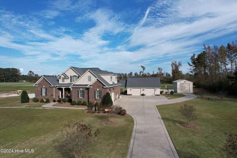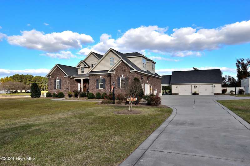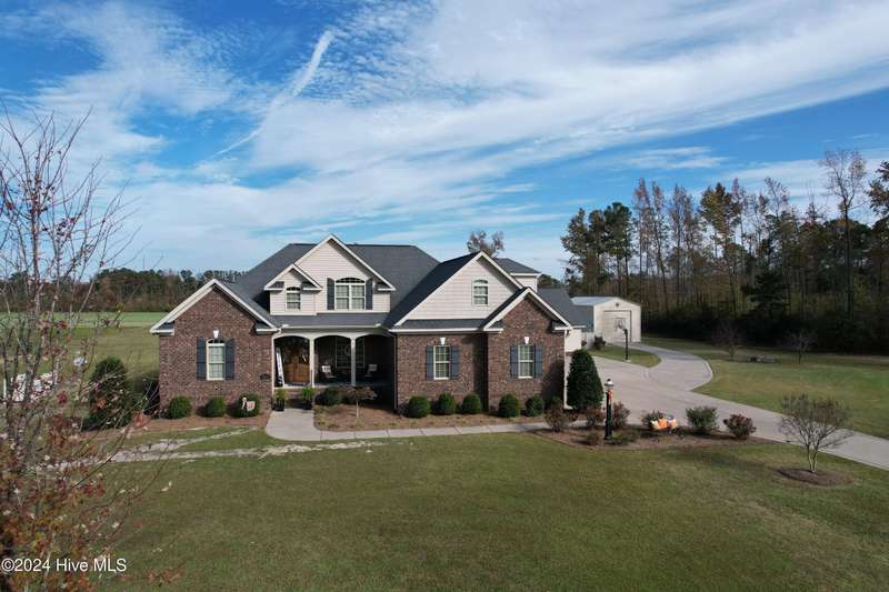 County Living at ITS FINEST! Welcome Home to views of cotton fields, beautiful sunsets and glorious sunrises! This custom built brick home sits on 2 acres in the county but minutes away from the city. This one owner home will provide you with spacious rooms, custom features, high-end finishes, multiple areas to entertain, tons of storage and places to park all the vehicles you could have. A double custom wood door greets you and your guests at the front. When entering you are greeted with hardwood flooring throughout, arched doorway, picture frame detailed trim, open floor plan, cathedral ceiling, tons of natural light, views of the outside, and a coziness of home that other houses may not have. This must have kitchen provides, custom cabinets with hidden spice pull outs, walk in pantry, custom island, tile backsplash, wall oven and a raised breakfast bar. The drop zone area will offer an amazing amount of storage and a 1/2 bath. The primary suite is downstairs, tucked away from the great room and it will not disappoint. Upstairs will allow 2 bedrooms, full bath with a walk-in shower, a bonus room and walk in attic space. Outside enjoyment comes with a covered back porch, a patio with wood burning fireplace, a hot tub, another covered porch area at the detached garage and just views to relax and enjoy all day. A 2 car attached garage and a 2 car detached garage provides the space you need for all items. There is an RV Garage that has its own driveway. You can't build all of this at this price. This 3 bedroom, 2 and 1/2 bath custom home is just waiting for you to make it your own. Quick and easy access to Wilson and Rocky Mount. Schedule your showing today!