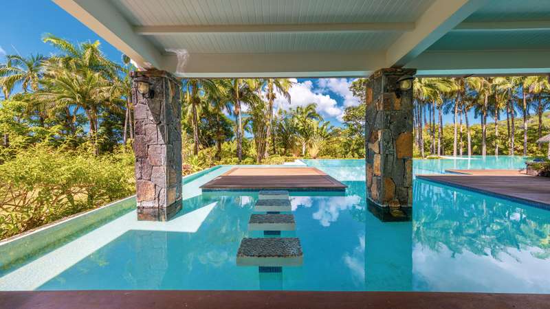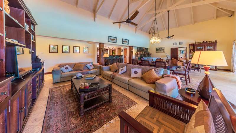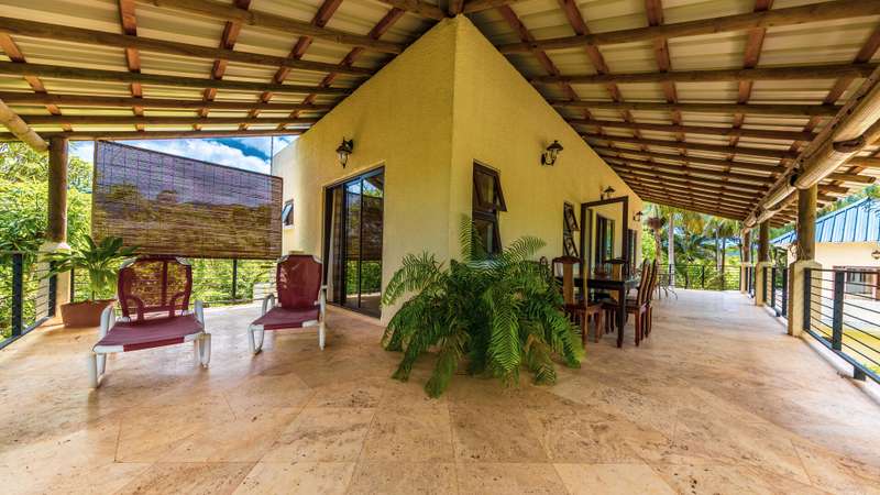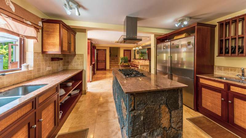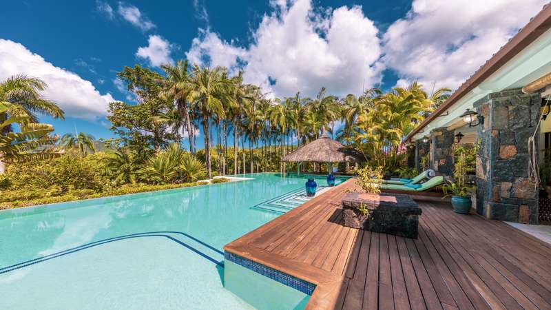Nestled in the breathtaking mountain village of Chamarel, within a prestigious and secure development, this spectacular colonial-style residence offers an unparalleled blend of elegance, comfort, and natural beauty. Poised within a lush tropical garden, this home provides exquisite panoramic views of the surrounding mountain ranges, creating a true sanctuary for those seeking serenity and space. Spanning an impressive 650m² on an acre plot, this property is designed for both grand entertaining and intimate family living. The spacious, open-plan interiors are adorned with cool Travertine flooring, volcanic rock accents, and a cozy fireplace, ensuring year-round comfort—from warm summer days to crisp winter evenings. The oversized bedrooms and exquisite bathrooms redefine luxury, with the master suite featuring a solid stone bathtub and a single-piece stone vanity, a statement of craftsmanship and elegance. The resort-style swimming pool, complete with an under-kiosk bar, is an entertainer’s dream. The fully equipped main kitchen and back kitchen are thoughtfully designed for practicality and effortless entertaining. Adding to the home’s versatility, there are two self-contained apartments, the ground-floor unit is wheelchair-friendly, providing easy accessibility, while the first-floor apartment offers two bedrooms, each with their own living/dining areas, kitchens, and a wrap-around verandas. Enveloped by a mature, landscaped garden rich with endemic flora, this property is a haven for nature lovers. Despite its secluded ambiance, the estate enjoys proximity to renowned attractions, gourmet restaurants, and cultural landmarks, offering the perfect balance of privacy and convenience. A rare opportunity to own a timeless masterpiece in one of Mauritius’ most enchanting locations.