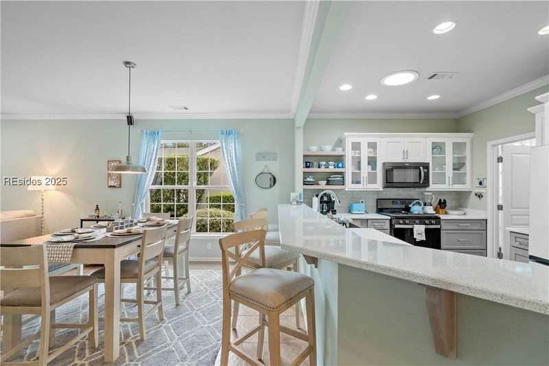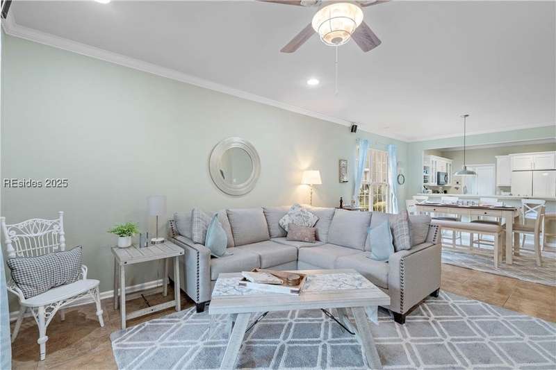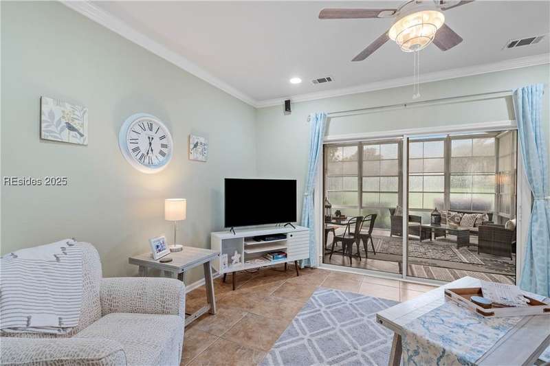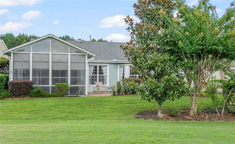 Welcome to 51 Kings Creek Drive Your fully furnished Sun City retreat. Experience Lowcountry elegance in this beautifully updated 2-bedroom, 2-bath home. The stylish yet understated interior features new kitchen appliances, quartz countertops, and a cozy, functional layout. Smooth ceilings and fresh paint make the home sparkle. A Murphy bed in the guest room maximizes space, while the den offers a quiet retreat for work or reading. The tiled family room opens to a screened porch with vinyl windows, leading to an outdoor patio and sweeping golf course views. Home is being sold FULLY FURNISHED including the 2018 ICON Golf cart - which is currently parked in the extended garage. This is a popular Egret model on the north side of 278, but still in Beaufort County with a lower tax rate. New paint outside and inside. 2025 stucco inspection on file with no issues. Move-in ready and impeccably maintained. Enjoy the best of Sun City Hilton Head living. Great location is convenient to Sun City amenities, Town Square, and restaurants