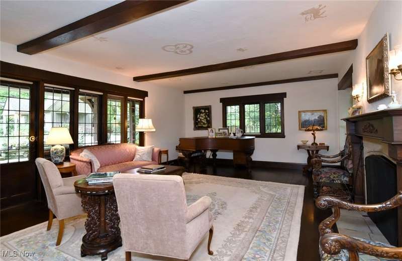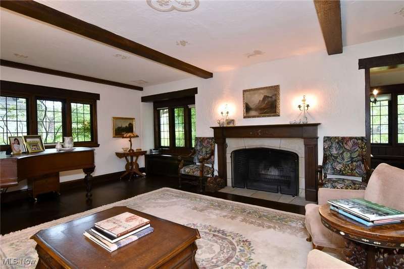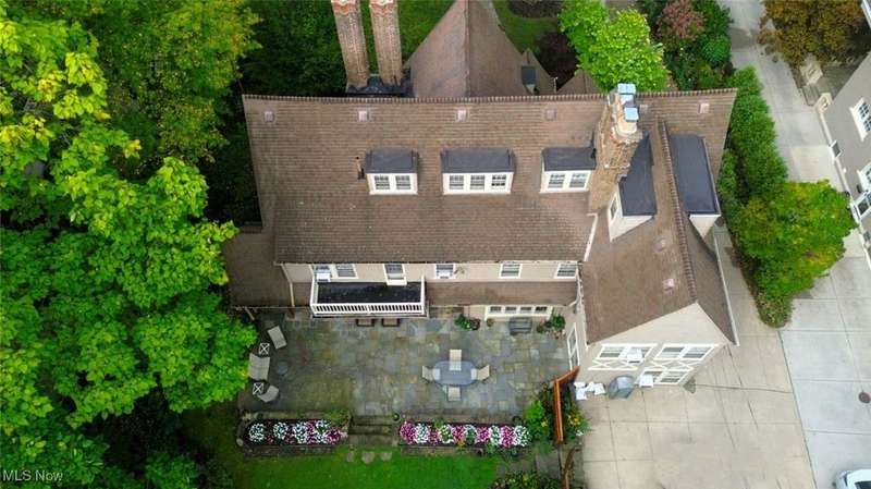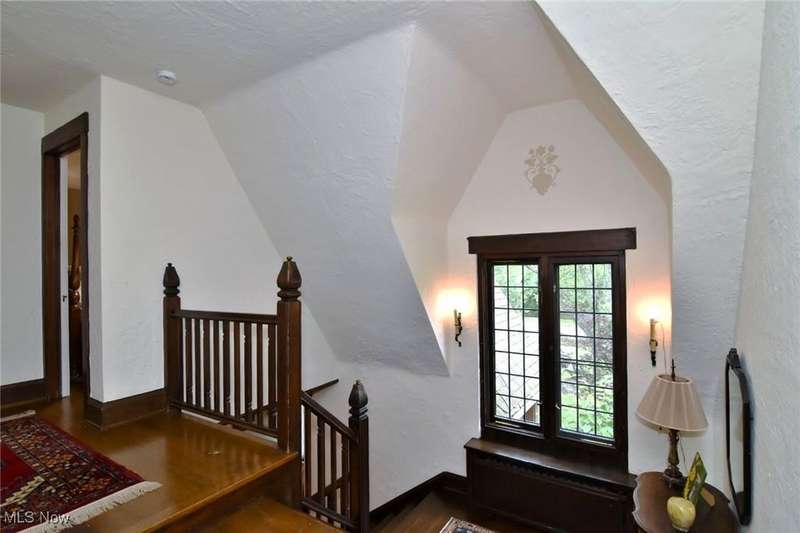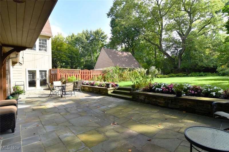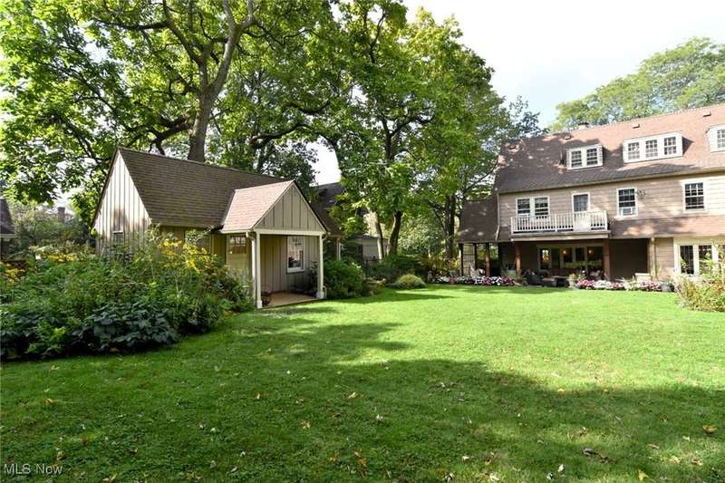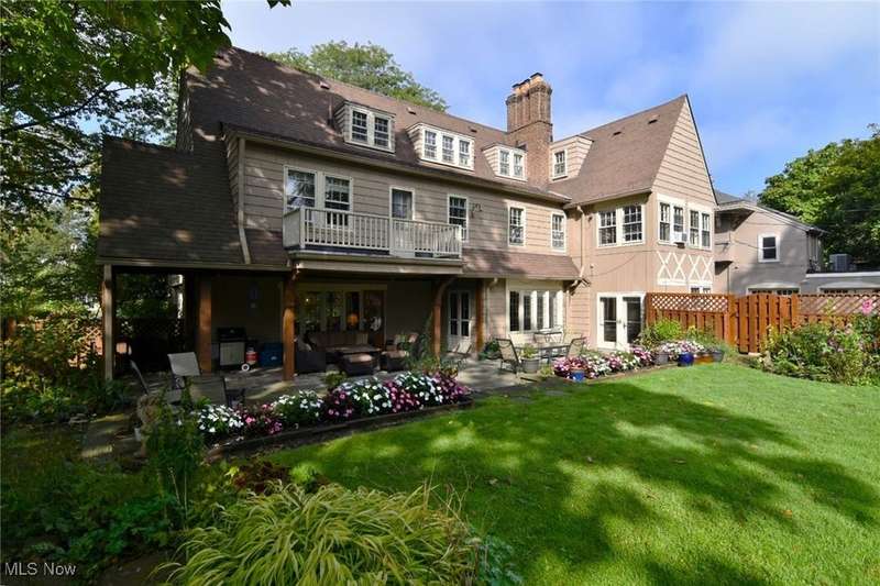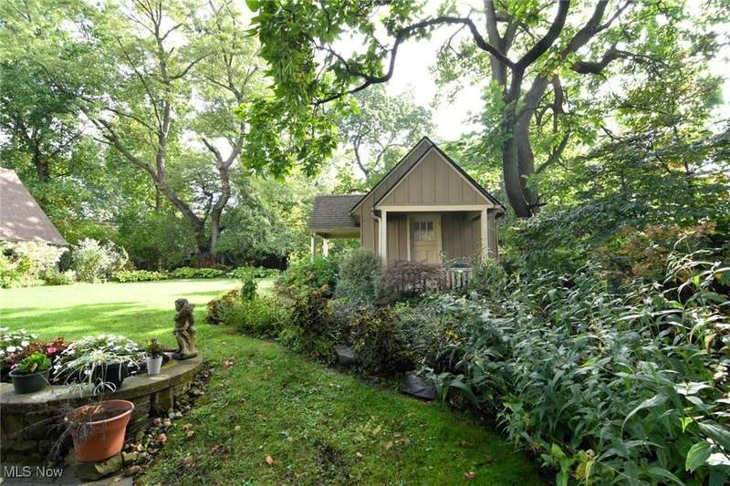Shaker Architectural Gem - Renowned architect Philip Small designed this English Tudor Cottage style home for his own family in 1922. Detailed carvings on timber trim, decorative brickwork on chimneys, and leaded glass windows adorn the exterior. Inside the foyer, hand carved woodwork and plaster details greet you. Step down to the grand living room featuring wide plank floors, beamed ceiling with original decorative plasterwork, and an inviting library nook. Generous dining room with its own fireplace and views of the gorgeous backyard garden. Kitchen was opened up in prior renovation offering a casual gathering or dining space. Center island and plentiful custom inset cherry cabinetry, walk-in pantry and wall of windows makes for a welcoming heart of home kitchen. South facing primary spans the depth of the home and has original built-in closets and a full bath with updated vanity and access to a lovely Juliet balcony. The second floor offers 3 additional bedrooms and 2 full baths, as well as a sunny office overlooking the gardens. The third floor has two bedrooms, a full bath, playroom and two great attic storage spaces. Pristine basement has been waterproofed with B-Dry system, and features a family room space, half bath, bright laundry room and plenty of storage. The stunning backyard invites you out of every living space to the covered Jacobean porch and flagstone patio with seating wall. The darling original playhouse for the architect's children was created with two rooms and a sweet covered porch to enjoy the babbling waterfall and pond. The gorgeous well planned garden beds have a sprinkler system for easy watering. Appealing location, in the heart of the all school area of the Boulevard neighborhood, just North of Marshall Lake and just a few blocks to Southerly Park, Nature Center and Horseshoe Park.
