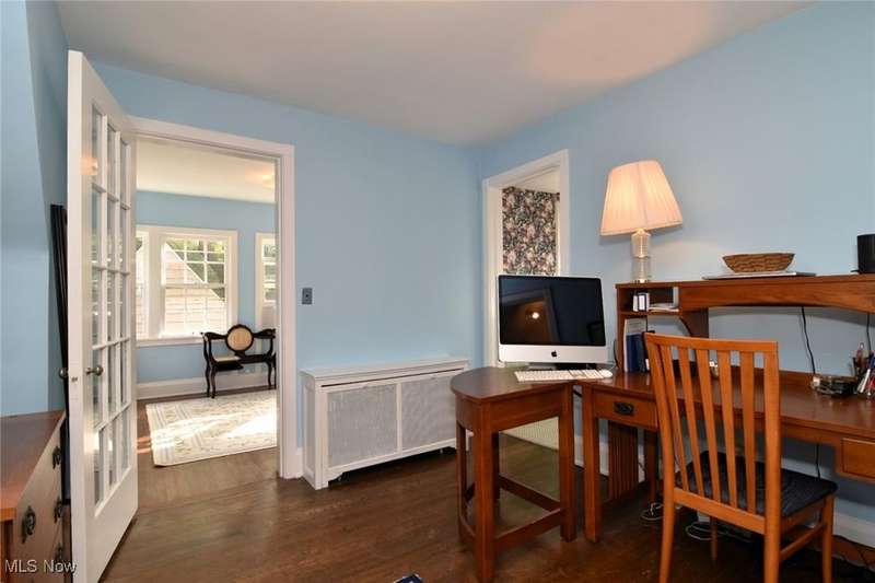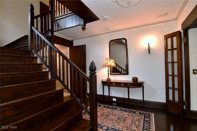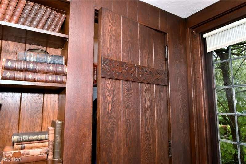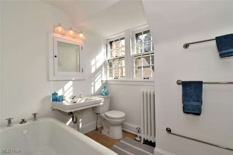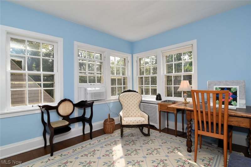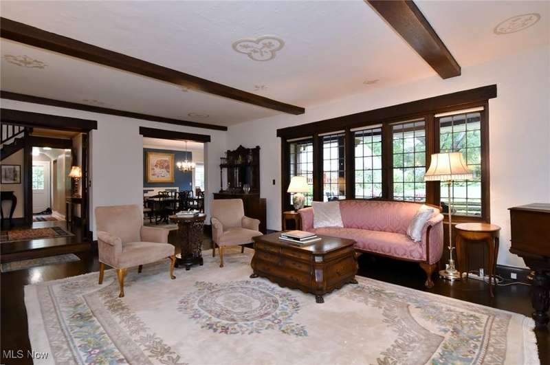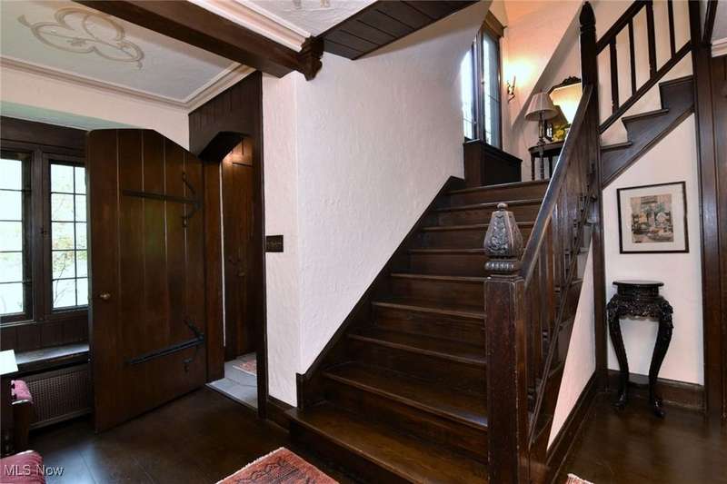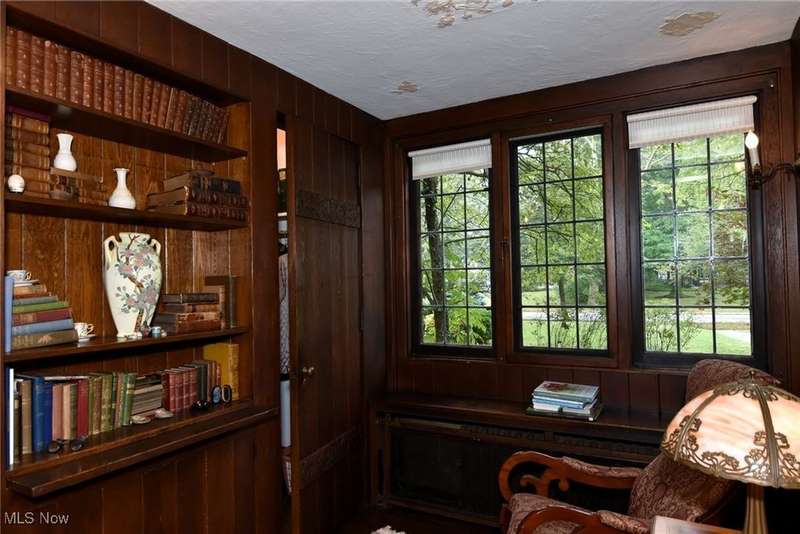 Shaker Architectural Gem - Renowned architect Philip Small designed this English Tudor Cottage style home for his own family in 1922. Detailed carvings on timber trim, decorative brickwork on chimneys, and leaded glass windows adorn the exterior. Inside the foyer, hand carved woodwork and plaster details greet you. Step down to the grand living room featuring wide plank floors, beamed ceiling with original decorative plasterwork, and an inviting library nook. Generous dining room with its own fireplace and views of the gorgeous backyard garden. Kitchen was opened up in prior renovation offering a casual gathering or dining space. Center island and plentiful custom inset cherry cabinetry, walk-in pantry and wall of windows makes for a welcoming heart of home kitchen. South facing primary spans the depth of the home and has original built-in closets and a full bath with updated vanity and access to a lovely Juliet balcony. The second floor offers 3 additional bedrooms and 2 full baths, as well as a sunny office overlooking the gardens. The third floor has two bedrooms, a full bath, playroom and two great attic storage spaces. Pristine basement has been waterproofed with B-Dry system, and features a family room space, half bath, bright laundry room and plenty of storage. The stunning backyard invites you out of every living space to the covered Jacobean porch and flagstone patio with seating wall. The darling original playhouse for the architect's children was created with two rooms and a sweet covered porch to enjoy the babbling waterfall and pond. The gorgeous well planned garden beds have a sprinkler system for easy watering. Appealing location, in the heart of the all school area of the Boulevard neighborhood, just North of Marshall Lake and just a few blocks to Southerly Park, Nature Center and Horseshoe Park.
