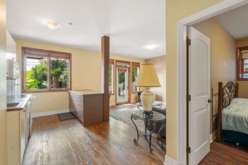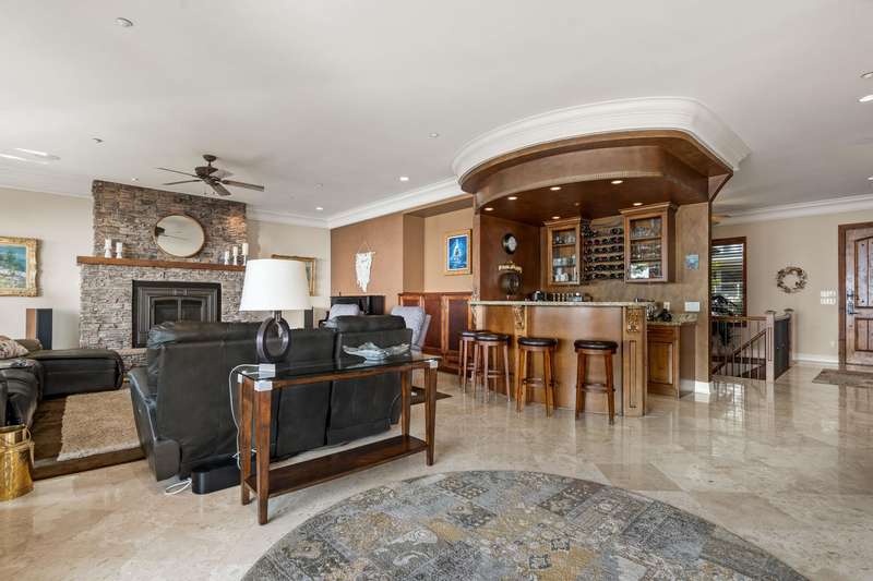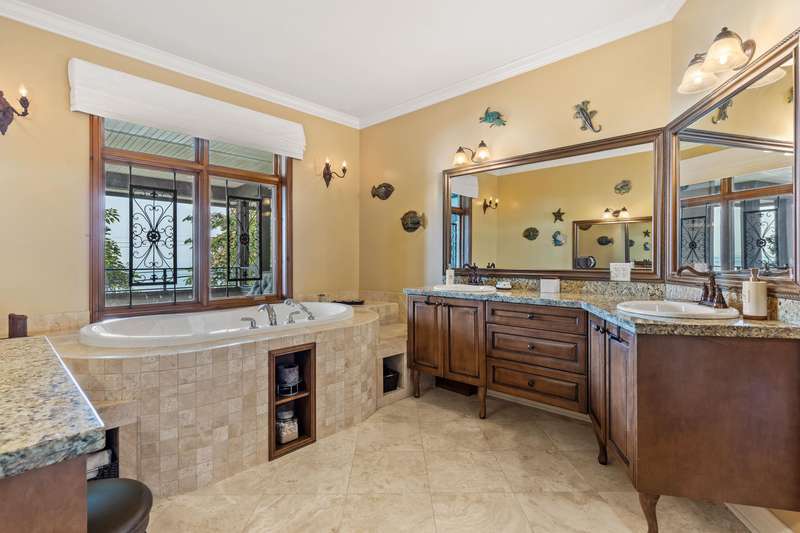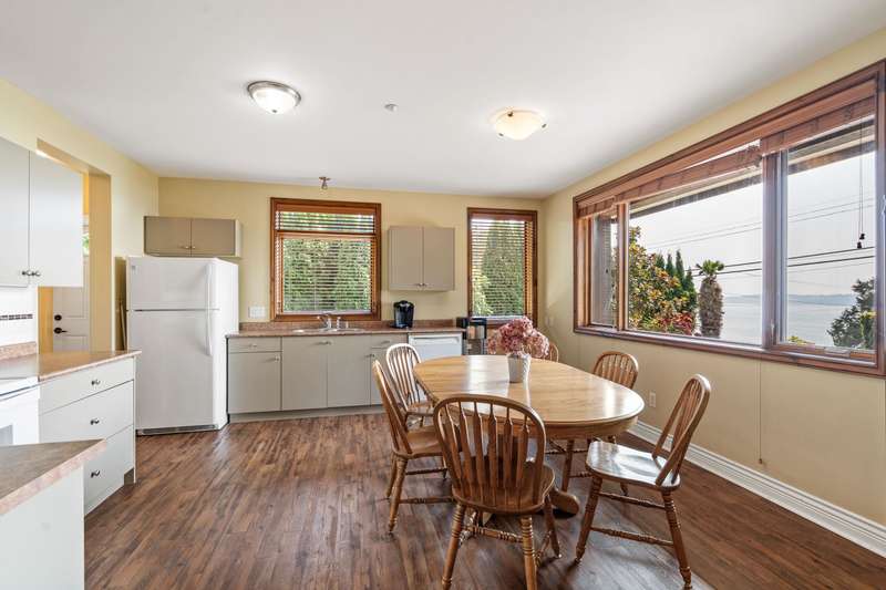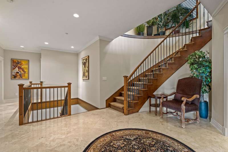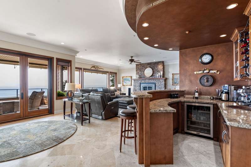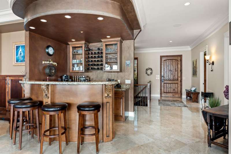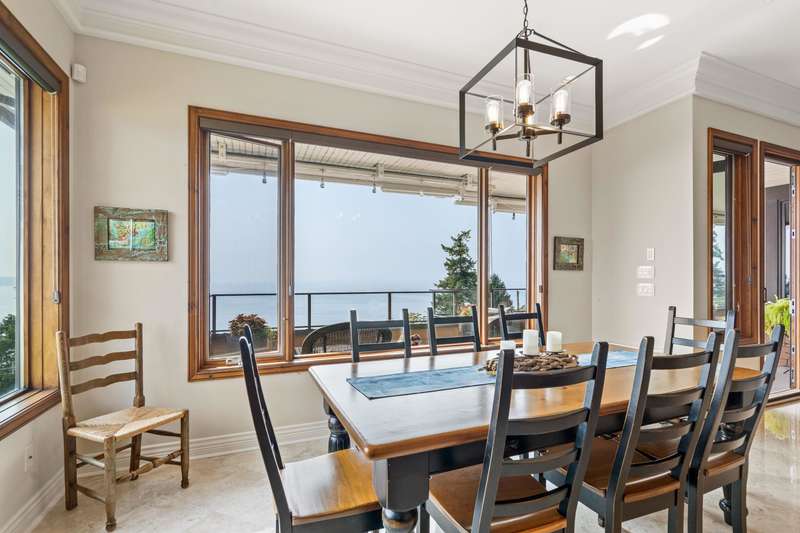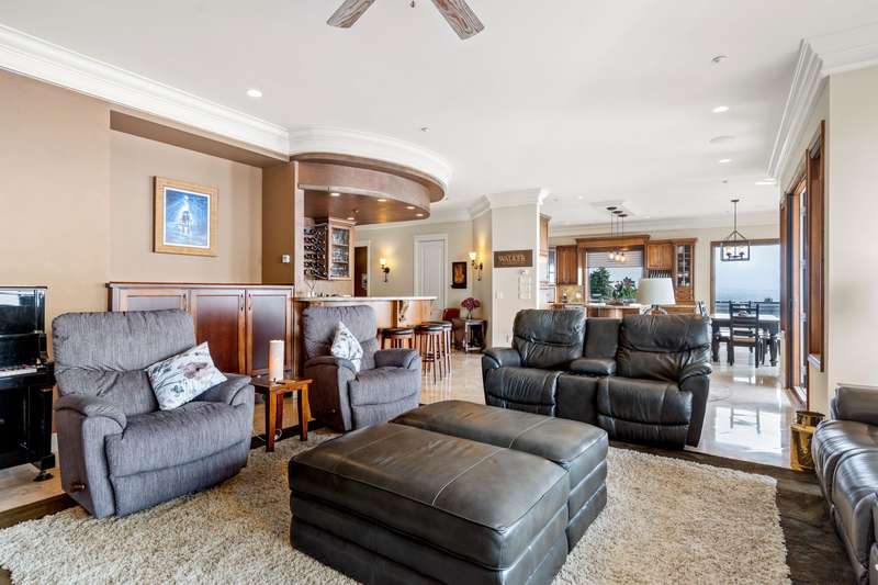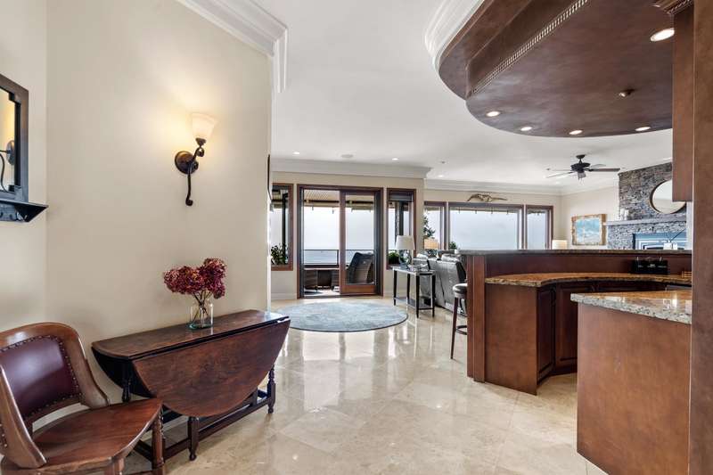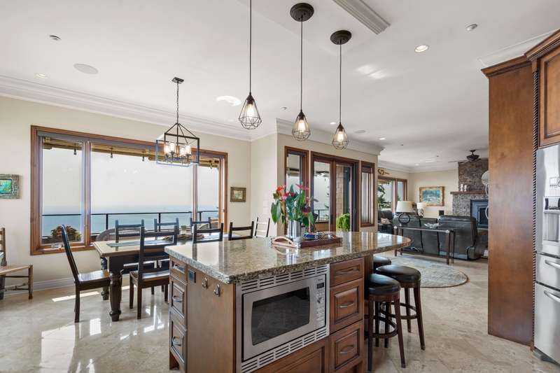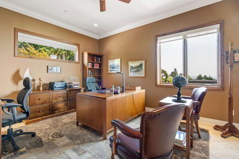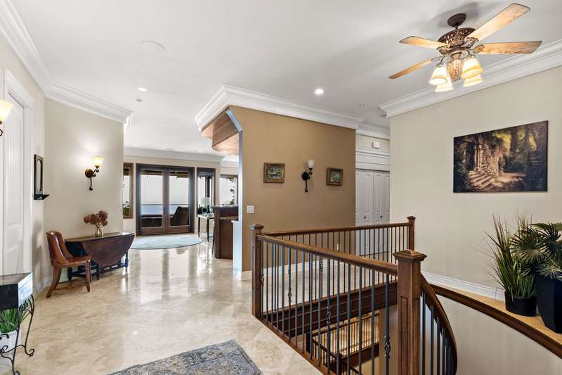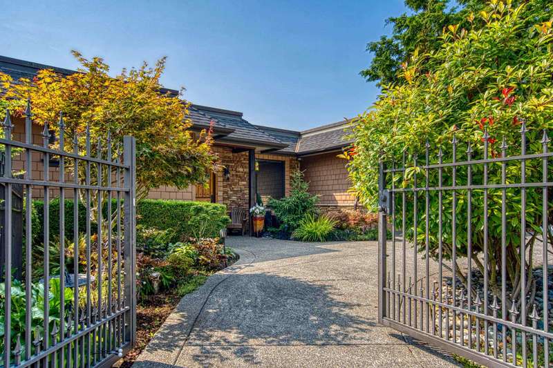 Sweeping ocean views from the moment you step inside the door. Very rare property with a fabulous 5653 sq. ft. home sitting on over a double lot of 8190 square feet next to parkland, with outstanding ocean views from all floors. Quality built with electric gate surrounding the level entrance & garage with excellent guest parking, 2x6 Douglas Fir construction, Pella wood windows with Low E, Travertine floors throughout main areas, dark stained Maple cabinets, granite counters, high end appliances, radiant in floor heat, control 4 lighting, sound system, butlers pantry, theatre room, hidden TV with remote, electric awnings, high ceilings on all floors. Bonus: legal 1 bedroom suite & separate area for guests. Gorgeous landscaping both front and back with water features. Outstanding home!