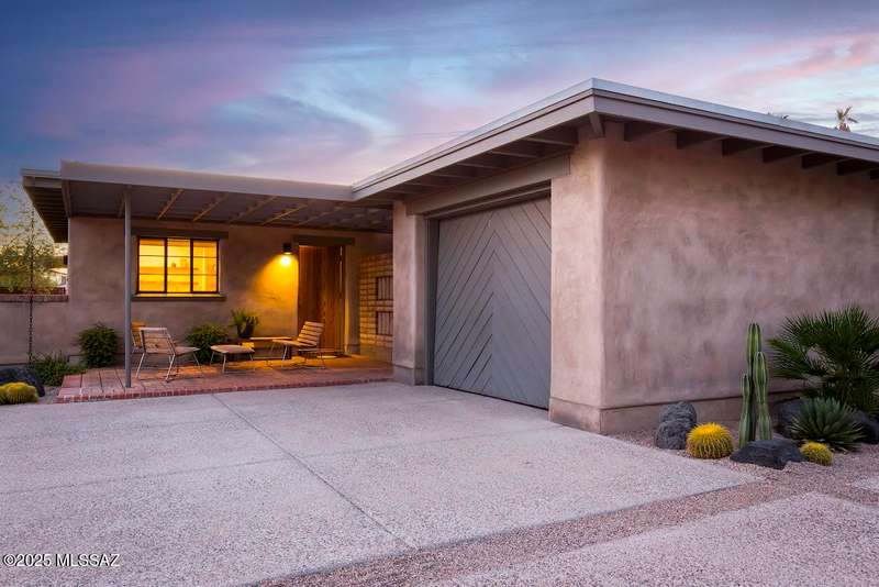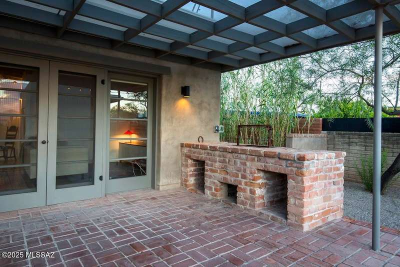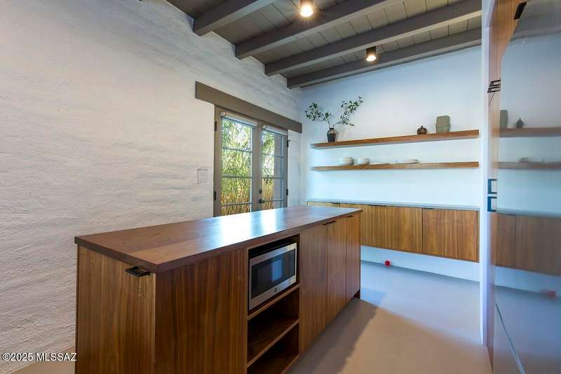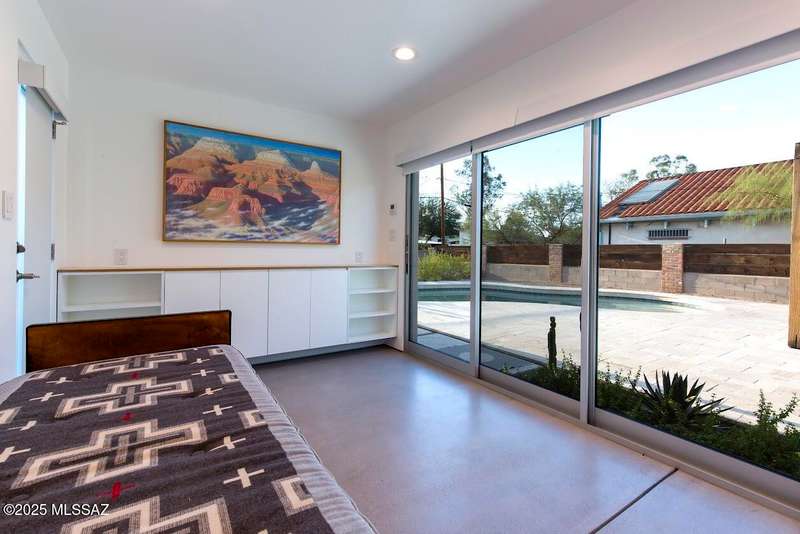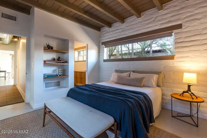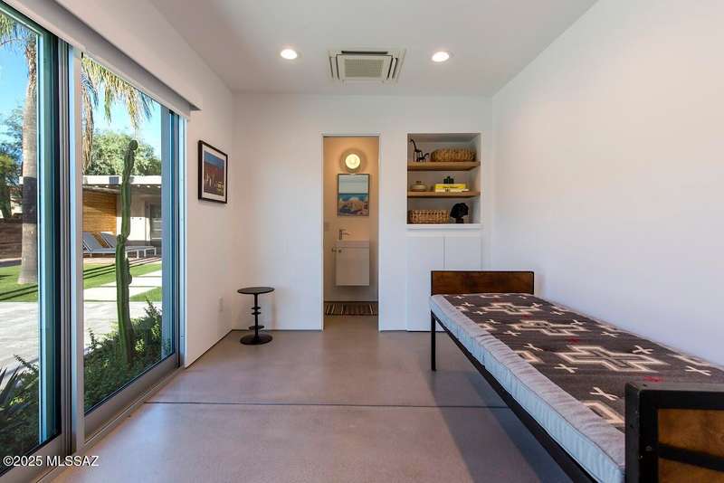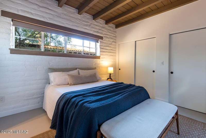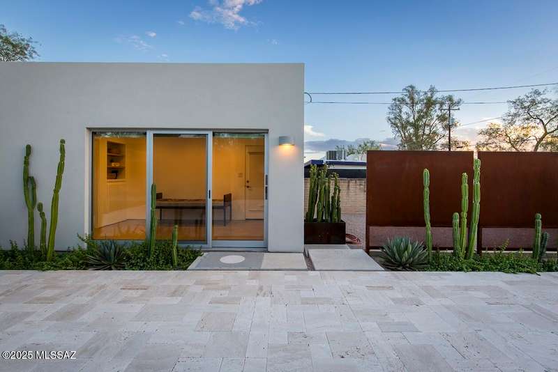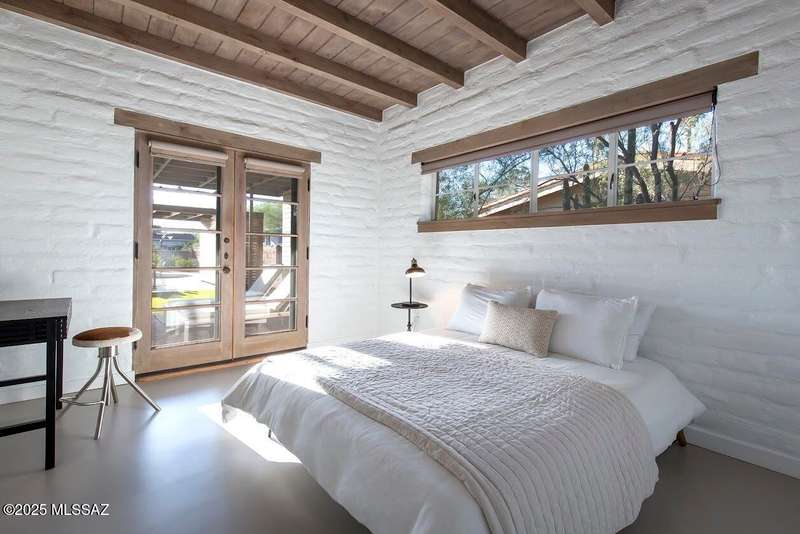 Stunning home that will appeal to architecture lovers, the remodel of this 1952 Josias Joesler, one of his last design projects, is true to the original, exposed adobe, hand-carved beams. Minimalist and modern, and coming up on Tucson Modernism Week, now is the time to make this treasure your own. The main home is 2 bd, 2 ba, and the casita can serve as a poolhouse and bath, 3rd bdrm & extra space for your guests. Minimalist and modern, casita added in 2022 by previous owners, who remodeled the home with local architects Ha-Ru and builder BaerWorks. The driveway beyond the casita is ideal for parking your Airstream, AND as your bike route exit, through the neighborhood to Natural Grocers, BBC, Session Yoga, Barrio Bread... all that the Joesler-designed village at the corner offers.
